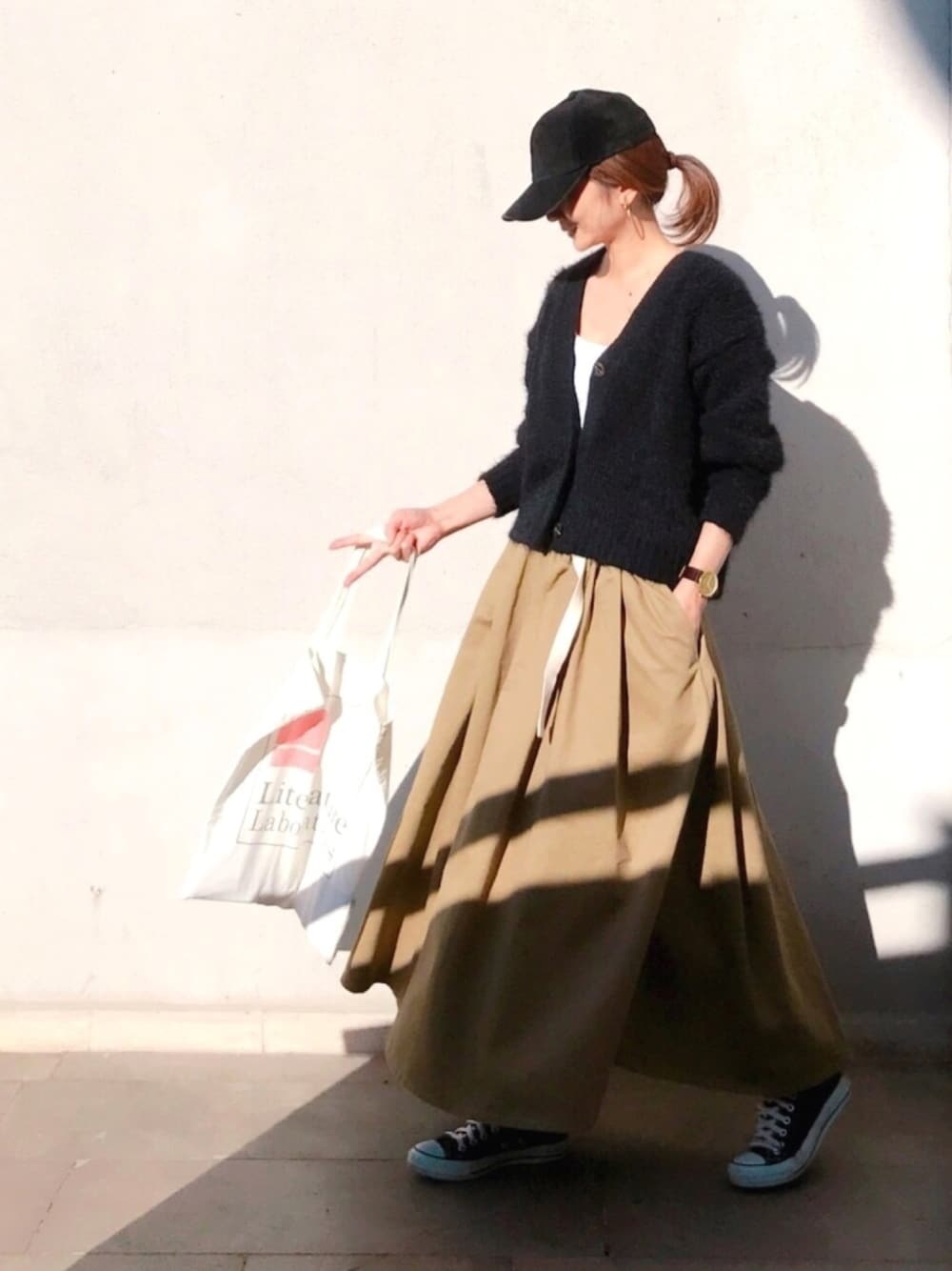 ふわふわカーディガン × キャップ メンズライクなコーデも、ふわふわカーディガンならちょっぴり女の子らしくなります💕💕 チョキみたいだけど😅、、、 ラブアンドピース2018🙆🏻♀️