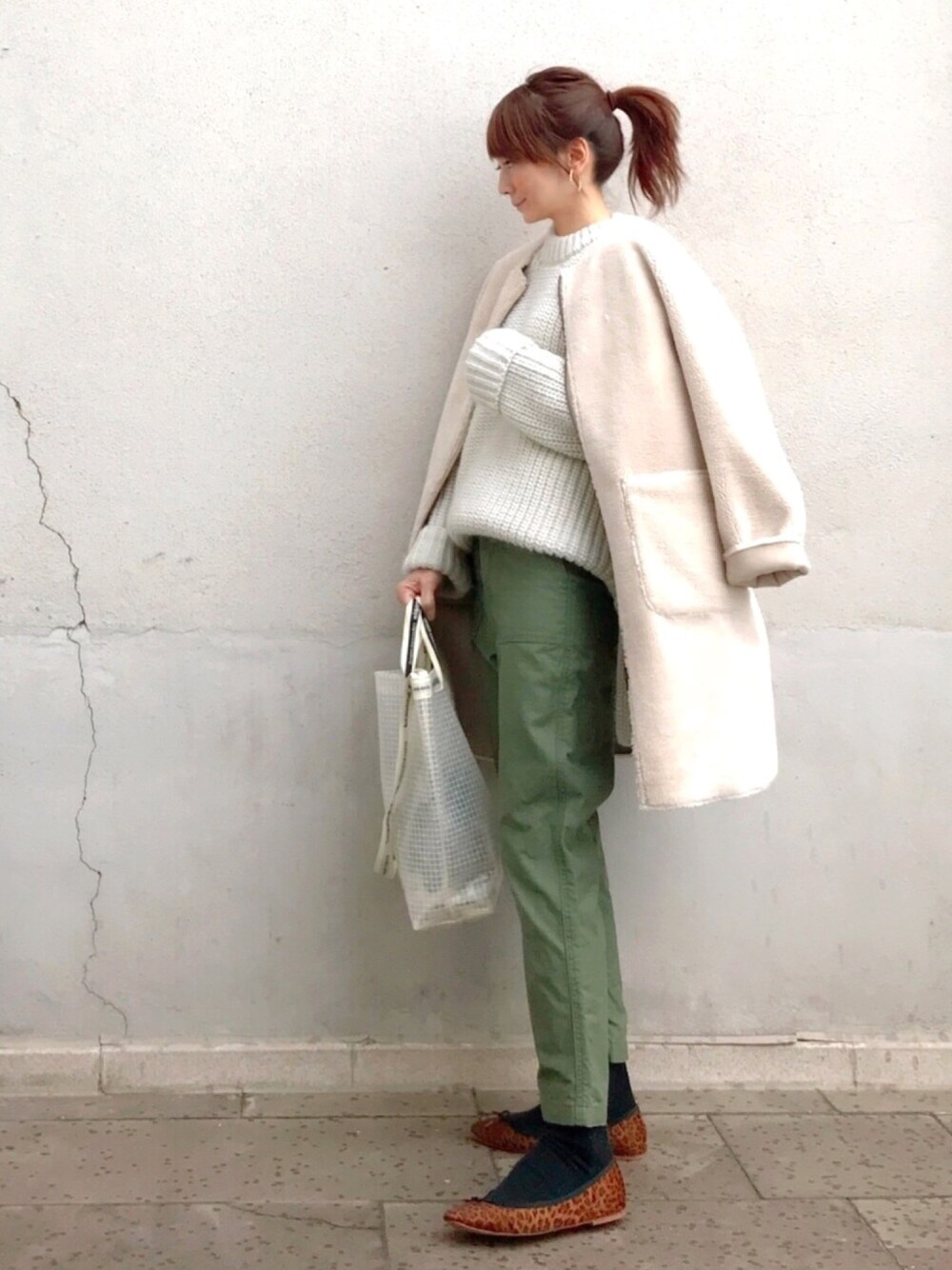 白 × カーキ 足元のレオパードが旬ポイント🥺💕💕
