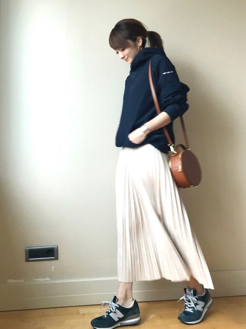 パーカー × プリーツスカート 楽ちんで可愛い、春にオススメのコーデです🥺💕💕