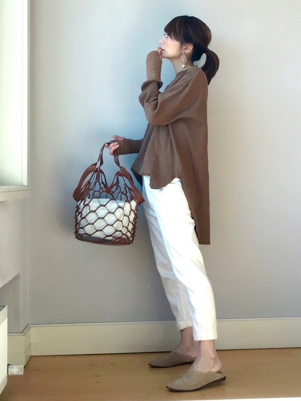 白 × ブラウン freak's store のワッフルチュニックが可愛い😍‼️ 手首のリブが長い上に、親指を出せるホールがあるから、常に萌え袖が可能です🙆🏻♀️ 後ろがヘンリーネックになっているので、ボタンを開けて着ればちょいセクシーに🙌🏻 一枚で様になる春に大活躍のトップスです。おススメ💕💕