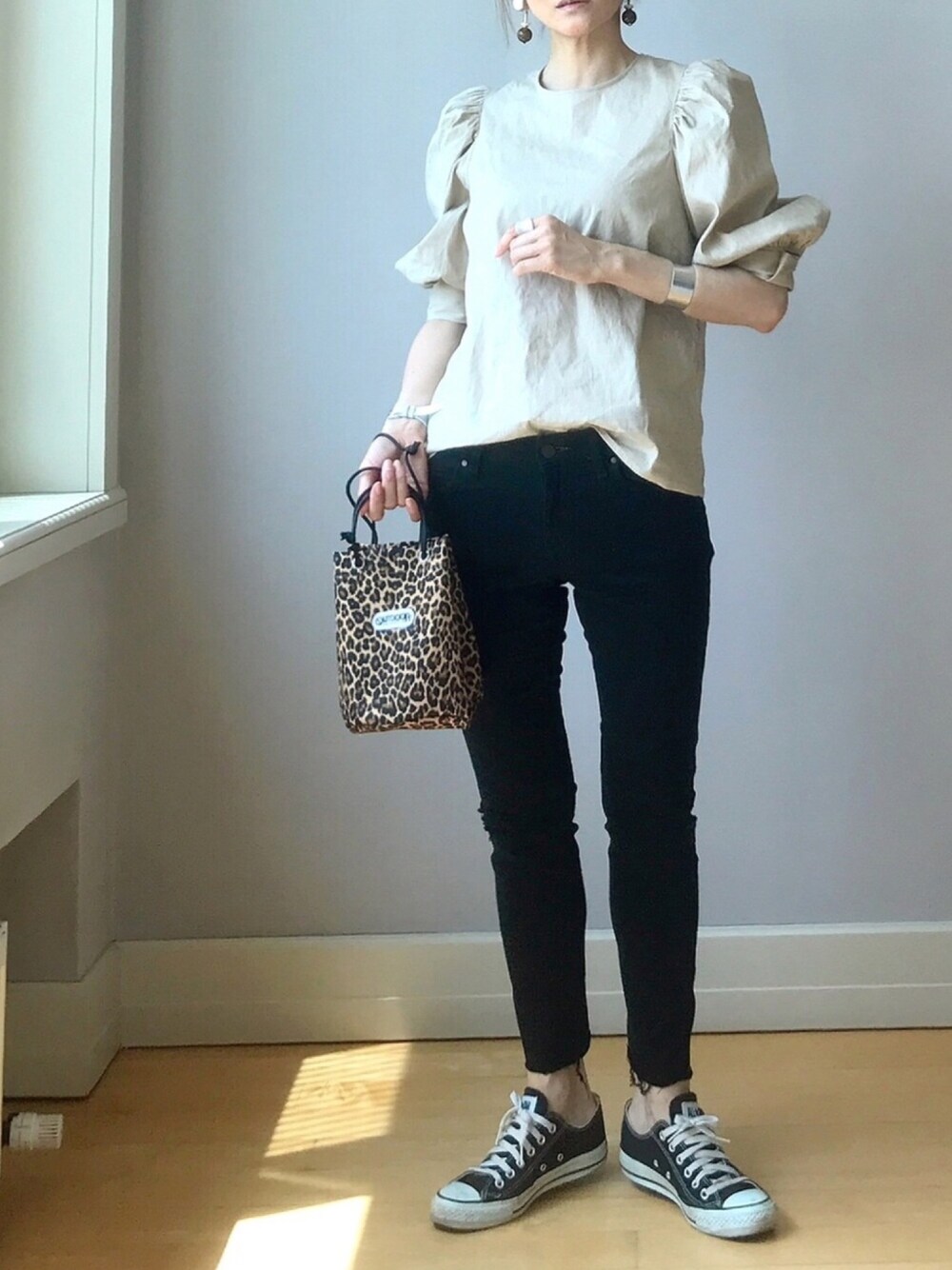 ベージュ × 黒 地味色コーデも、ciel'air のボリューム袖ブラウスなら華やか大人カジュアルの完成🥺💕💕