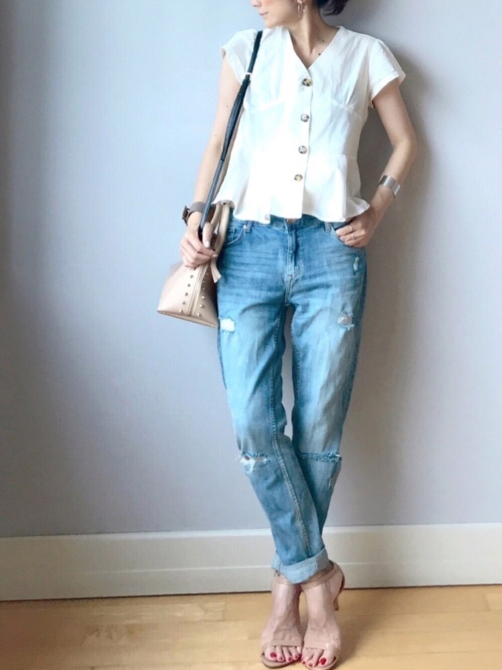 LUMIEのシャツ/ブラウス「フレンチスリーブペプラムブラウス」を使ったコーディネート
