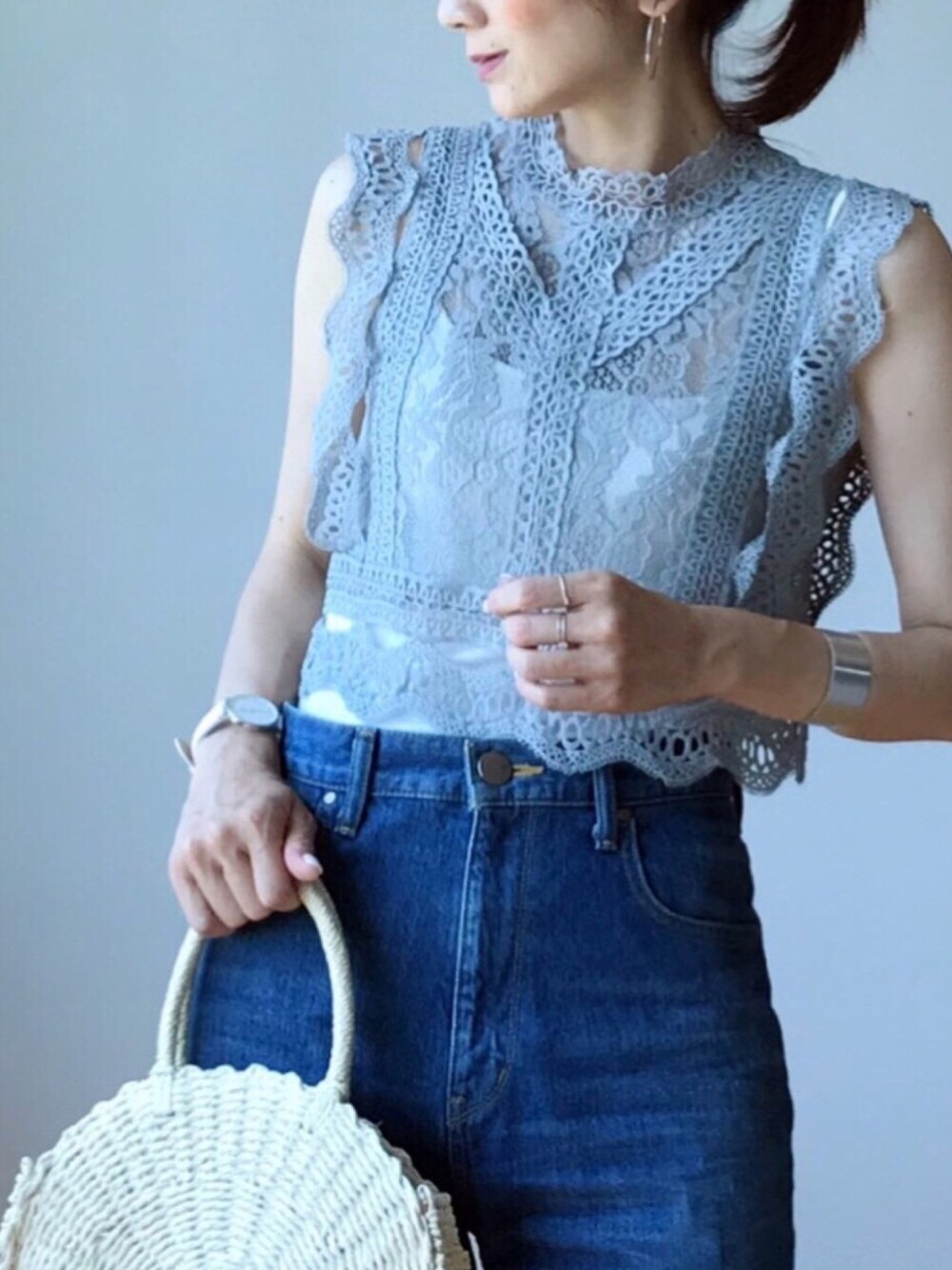 LUMIEのシャツ/ブラウス「総レースデザインコンパクトトップス」を使ったコーディネート