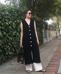 白ボタンが可愛いロングニットベスト🥺💕💕 上質なニットベストは、大人のカジュアルスタイルにぴったり🙆🏻♀️ 厚底サンダルはスタイルアップ出来る上に、ウェッジソールだから歩きやすくてオススメです‼️