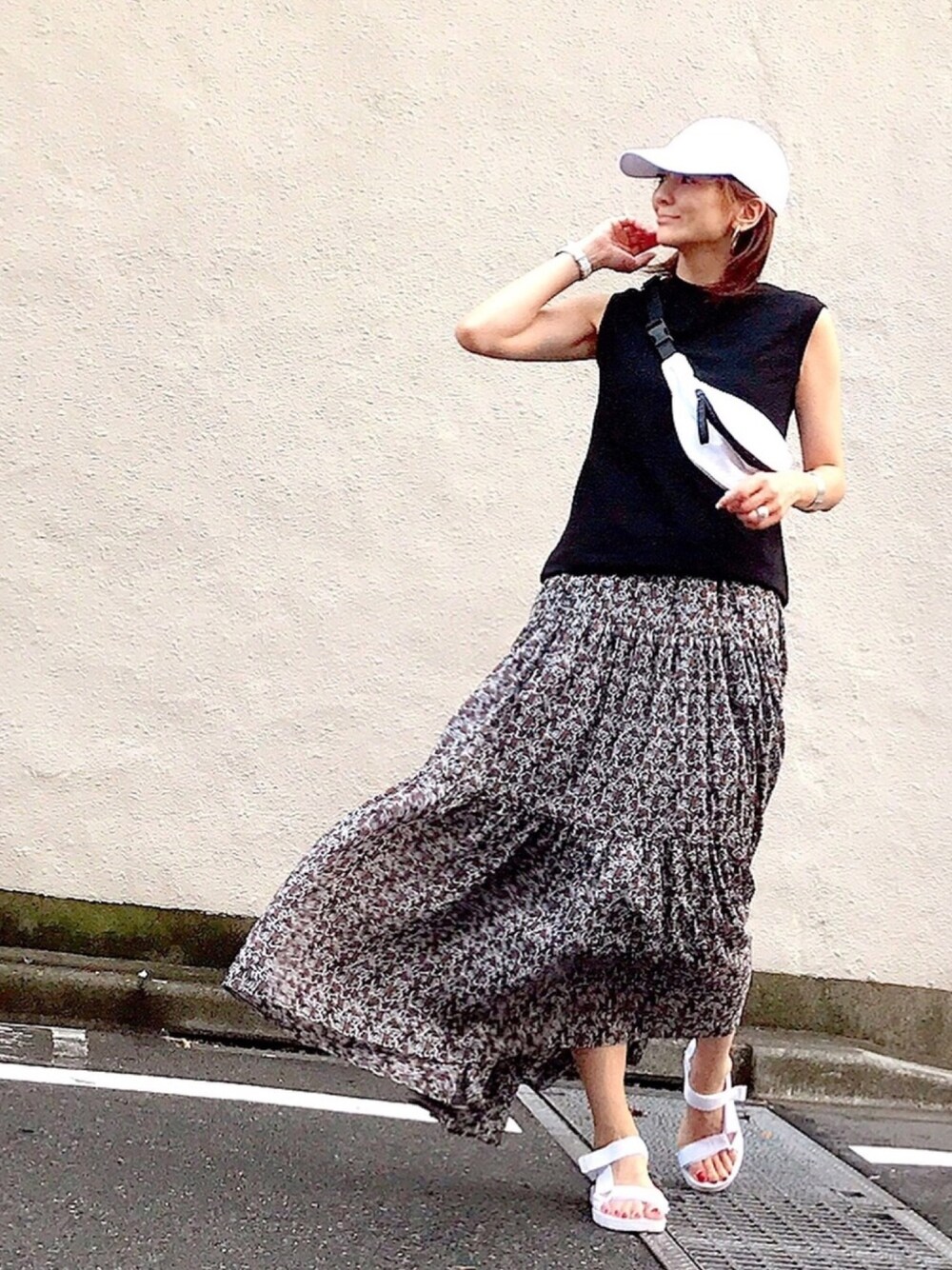 小花柄ワンピースにトップスをレイヤードしてます😆💕💕 秋になったらパーカーをレイヤードしよう🙆🏻♀️‼️