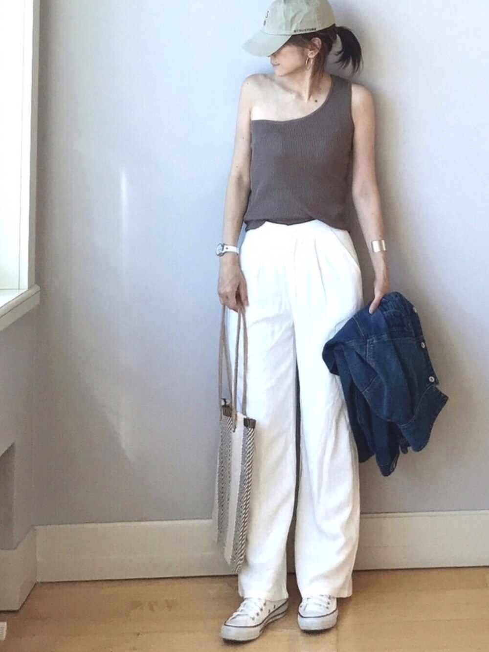 LUMIEのタンクトップ「ワンショルダーリブタンクトップ」を使ったコーディネート