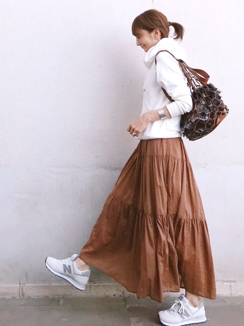 パーカー × マキシスカート 秋のカジュアルコーデは、パーカーにお任せ🥺💕💕 秋のカフェオレコーデ☕️ミルク多め🥛