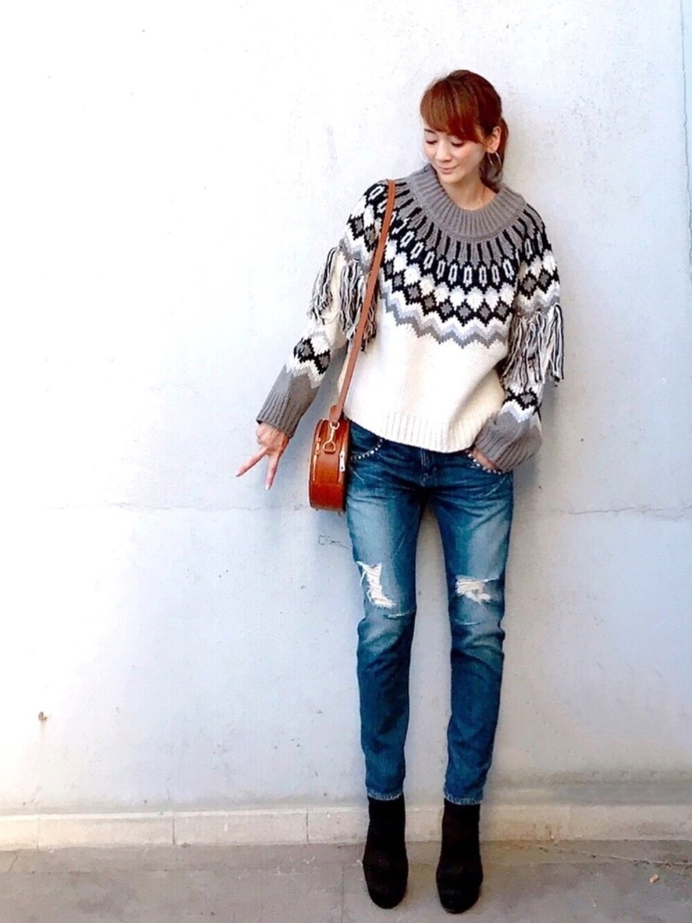 #ラブアンドピース2019 9/30まで開催中❤️✌️ 今WEARでは、ピースポーズをして #ラブアンドピース2019 のタグをつけて投稿すると1投稿 10円の寄付になります🥺💕💕 スザンヌさんコラボ、フリンジアクセントのノルディックニット🧶めちゃくちゃ可愛いくてお気に入り!