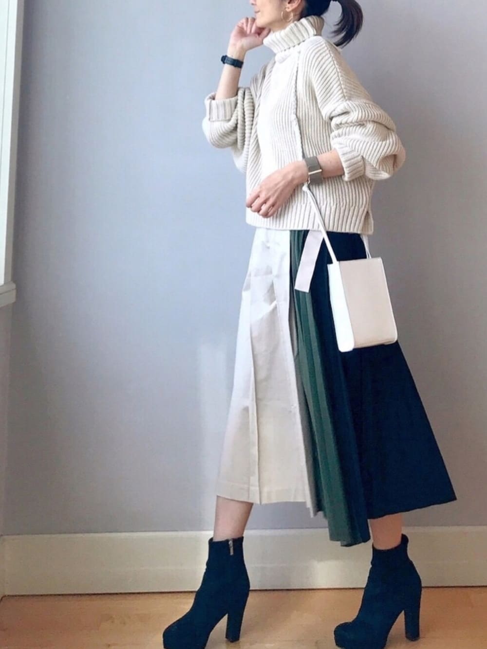 LUMIEのスカート「【WEB限定】ブロッキングパネルプリーツスカート」を使ったコーディネート