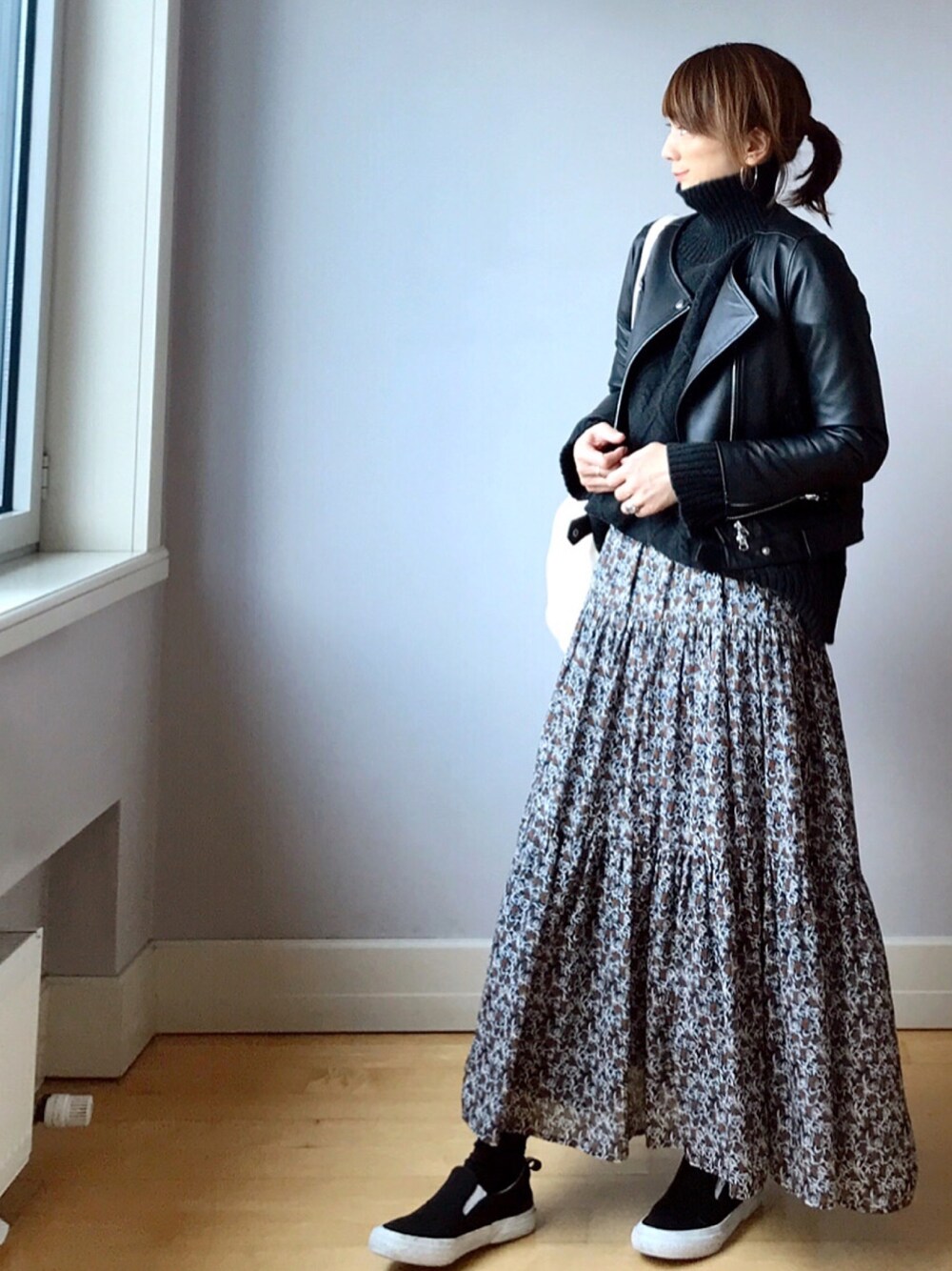 花柄×ライダース 毎年定番の甘辛ミックス