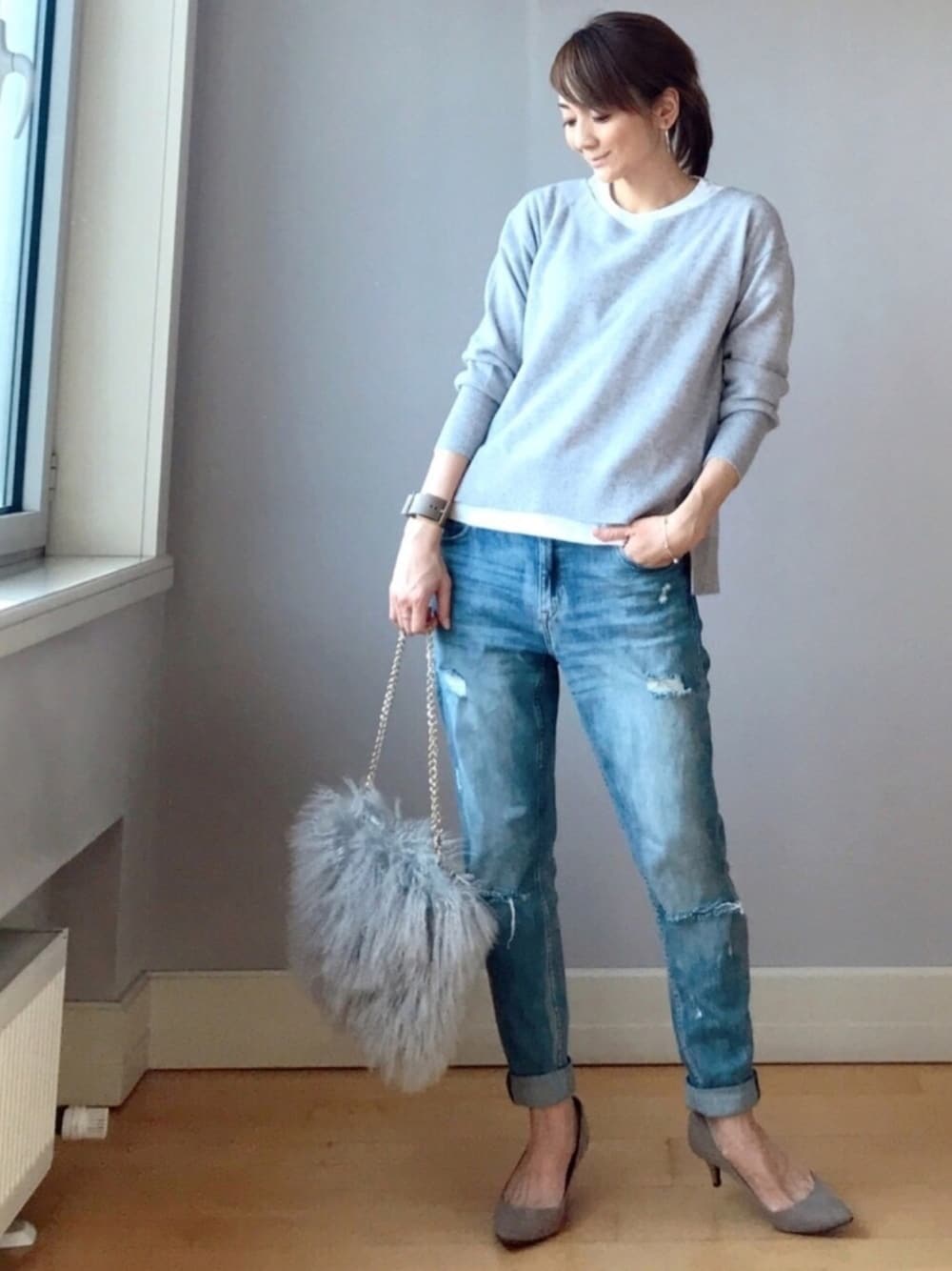 カシミア100%のプレミアクオリティのニット 光るようなグレーが、顔まわりに上品な華やぎを🥺💕💕 手触り、あたたかさ、どれをとっても大満足な1着です🙆🏻♀️