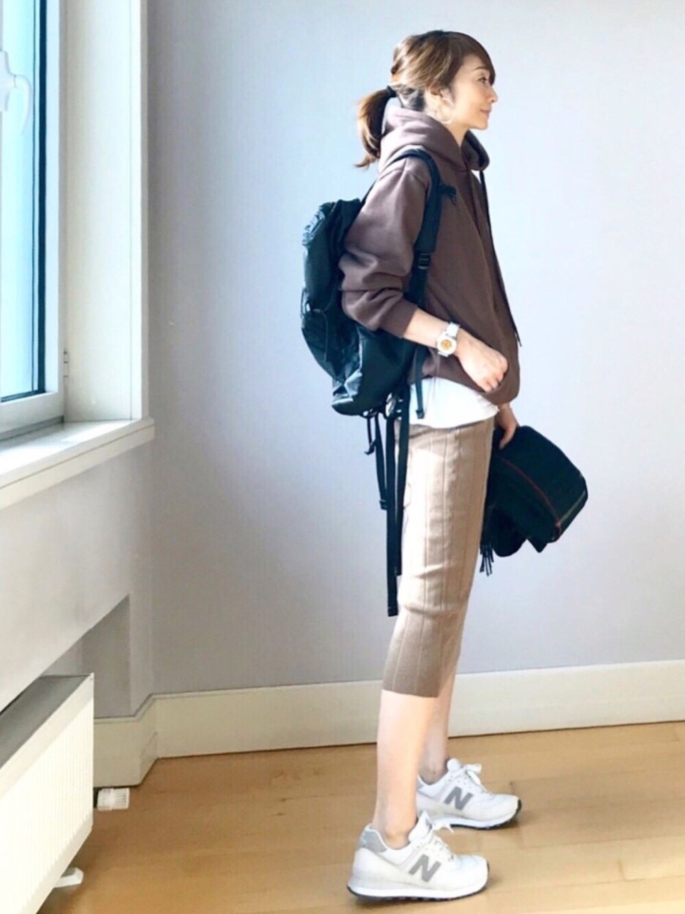ブラウンのパーカー 形も色も、めちゃくちゃお気に入り! 茶の濃淡に白を差して🥺💕💕