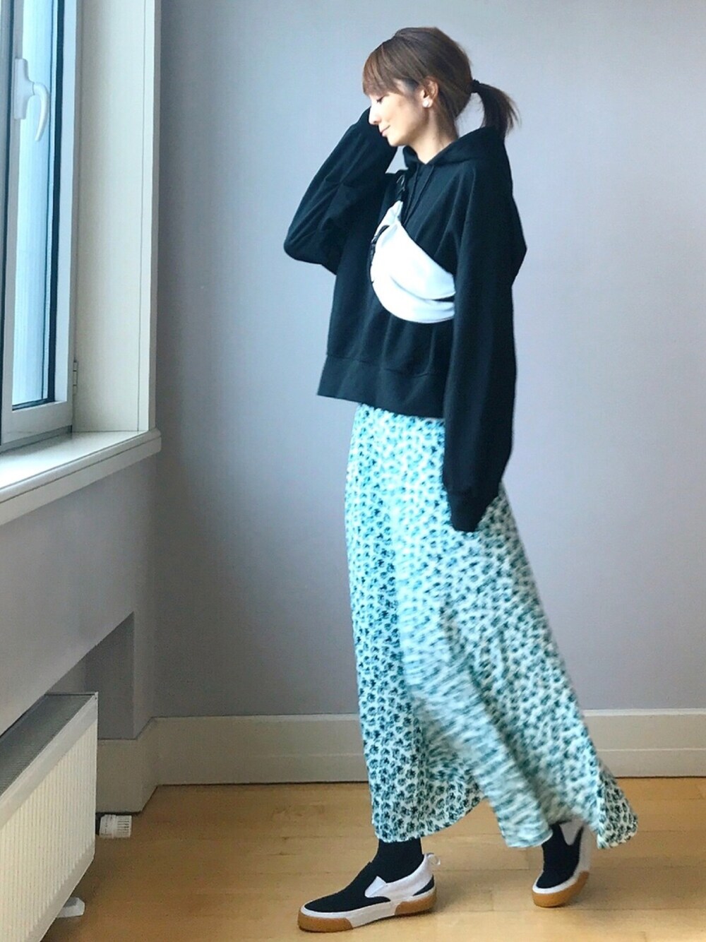 パーカー × 花柄スカート 今季も引き続きミントグリーンに注目してます🙆🏻♀️