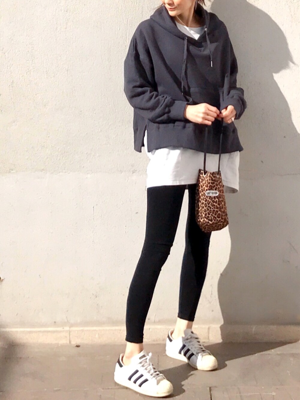 春のフーディ 裏起毛であったかいし、シルエットが絶妙に可愛いくてお気に入り😍 ネックが広めで中から白Tがのぞくと爽やかになりますね🙋🏻♀️
