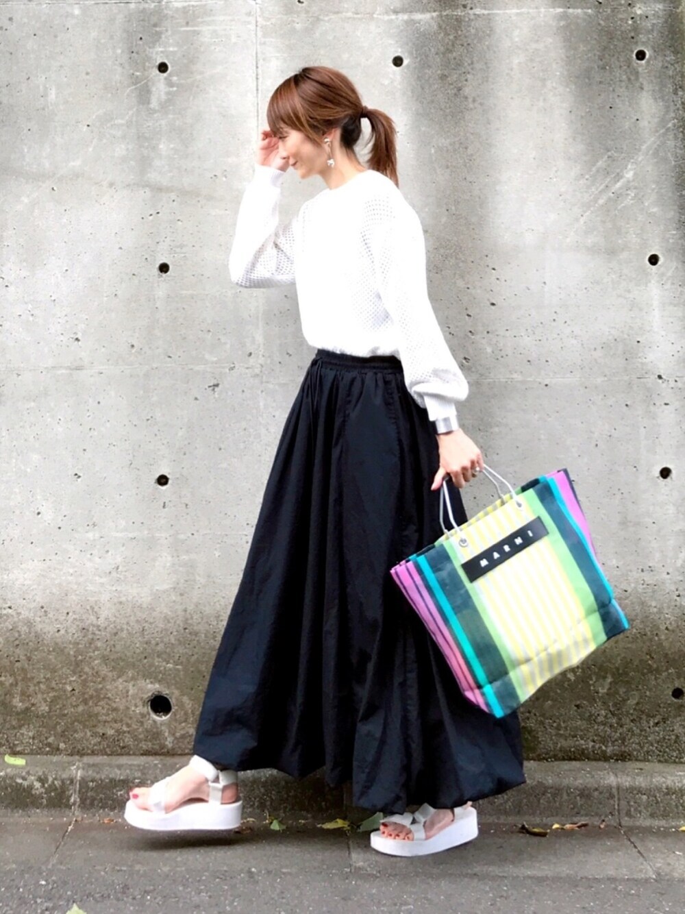 少し肌寒かった日のコーデ メッシュニットなら袖があっても肌が透けて軽やかです🙆🏻♀️
