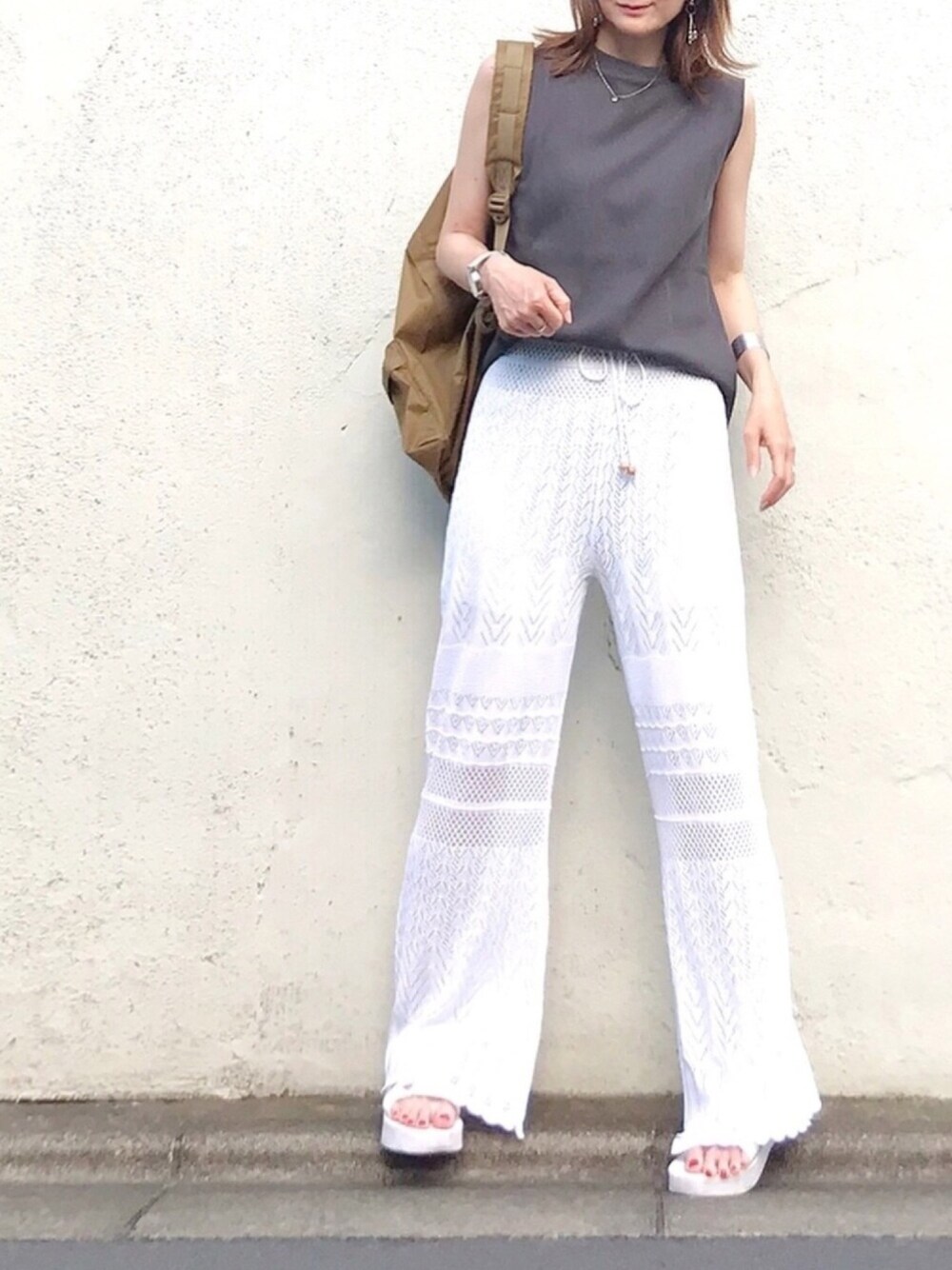 LUMIEのその他パンツ「透かし編ドッキングニットパンツ」を使ったコーディネート