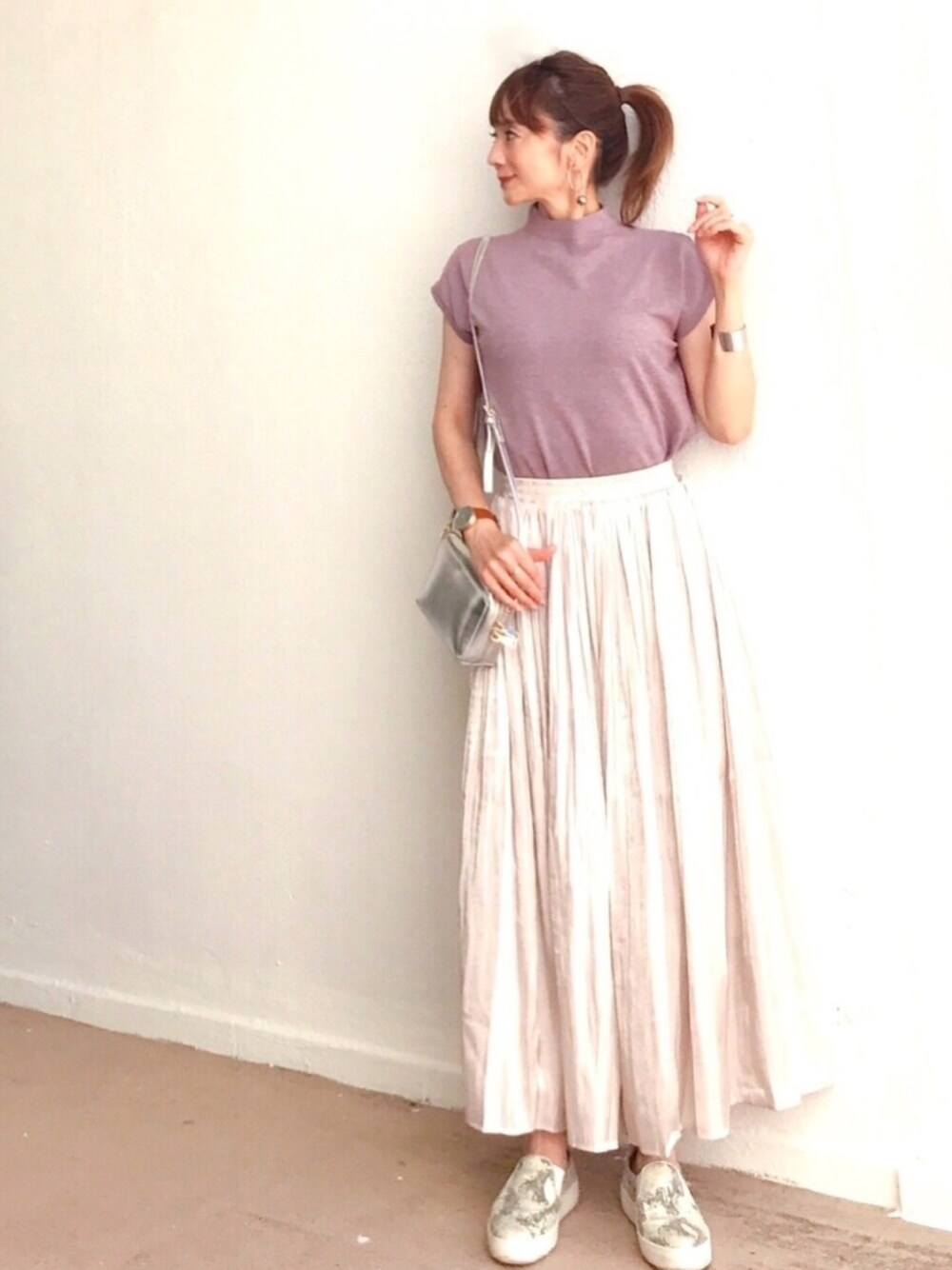 LUMIEのニット/セーター「ボトルハイネックフレンチスリーブニット」を使ったコーディネート