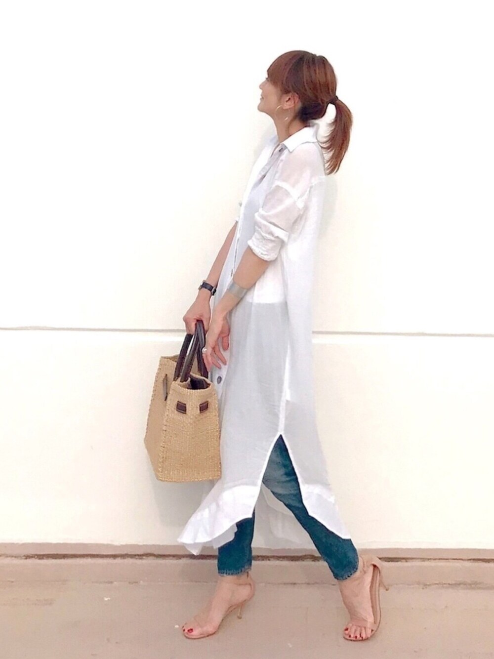 LUMIEのシャツワンピース「シェルボタンシャツワンピース(サマーワンピース シアーワンピース )」を使ったコーディネート