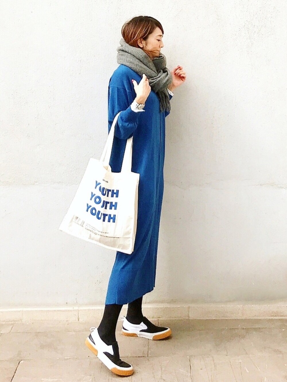 LUMIEのワンピース「【洗える】Vネックニットワンピース」を使ったコーディネート