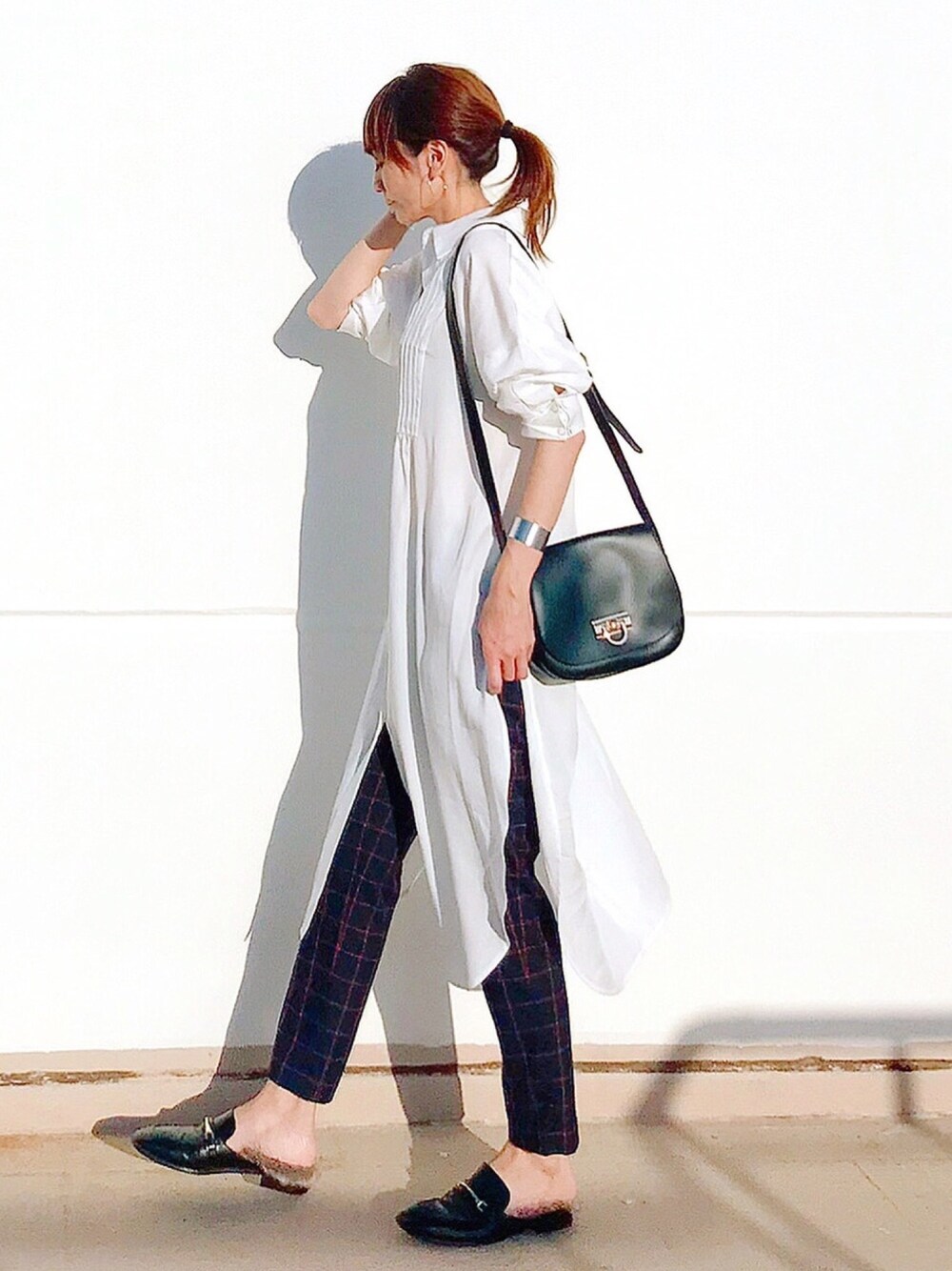 LUMIEのシャツ/ブラウス「サイドスリットピンタックロングシャツ(シャツワンピース)」を使ったコーディネート
