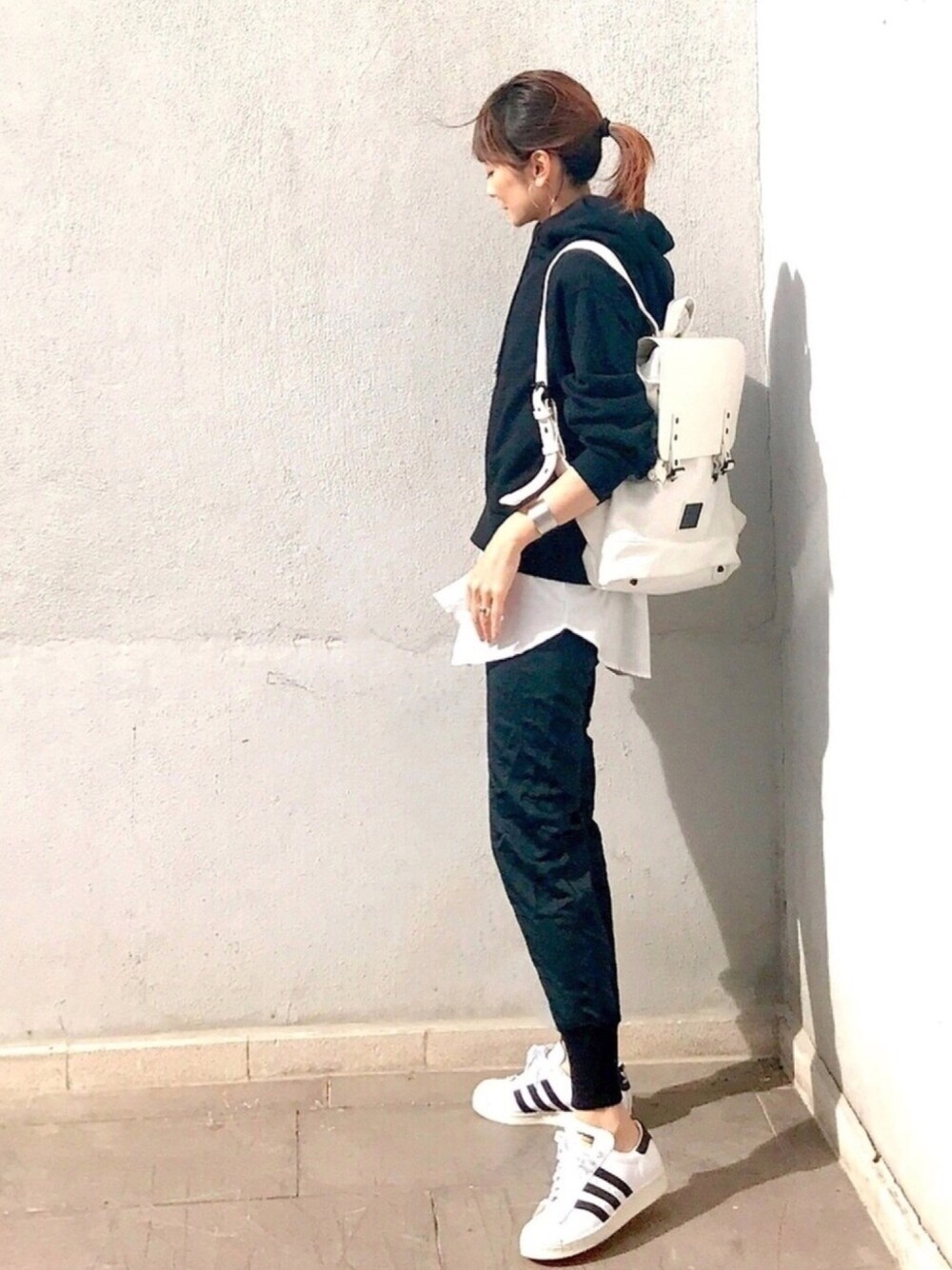 LUMIEのスニーカー「adidas アディダス SS 80s スーパースター 80s G61070 F12 WHT/BLK/CHALK2」を使ったコーディネート