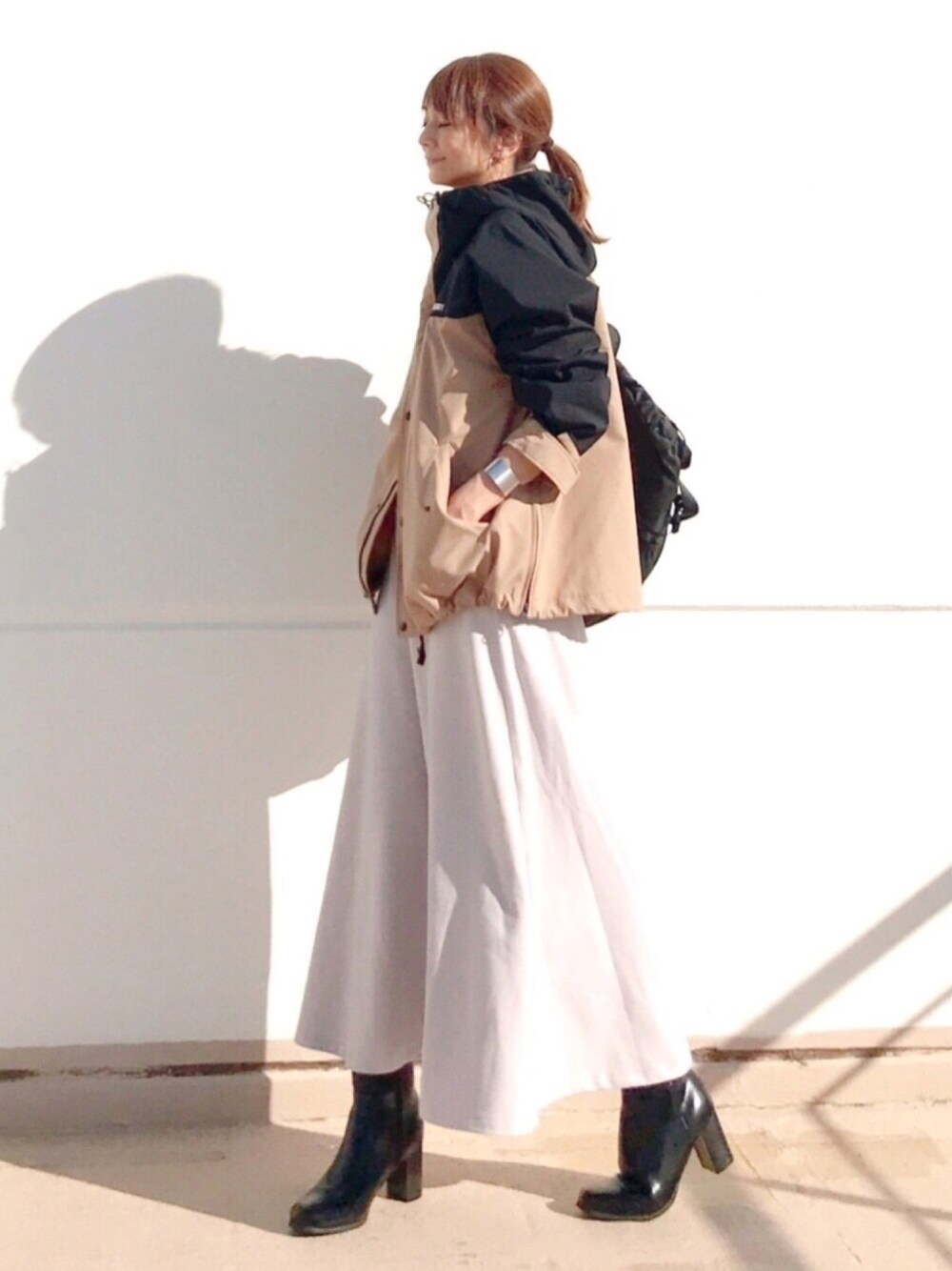 マキシスカートにスポーティなブルゾン スカートにマウンテンパーカーを合わせてみました🥺💕💕ミドル丈のアウターには、ストンと落ちるAラインシルエットのスカートが相性良いと思います。 甘過ぎないクールなスカートコーデが好きな方にオススメ🙆🏻♀️
