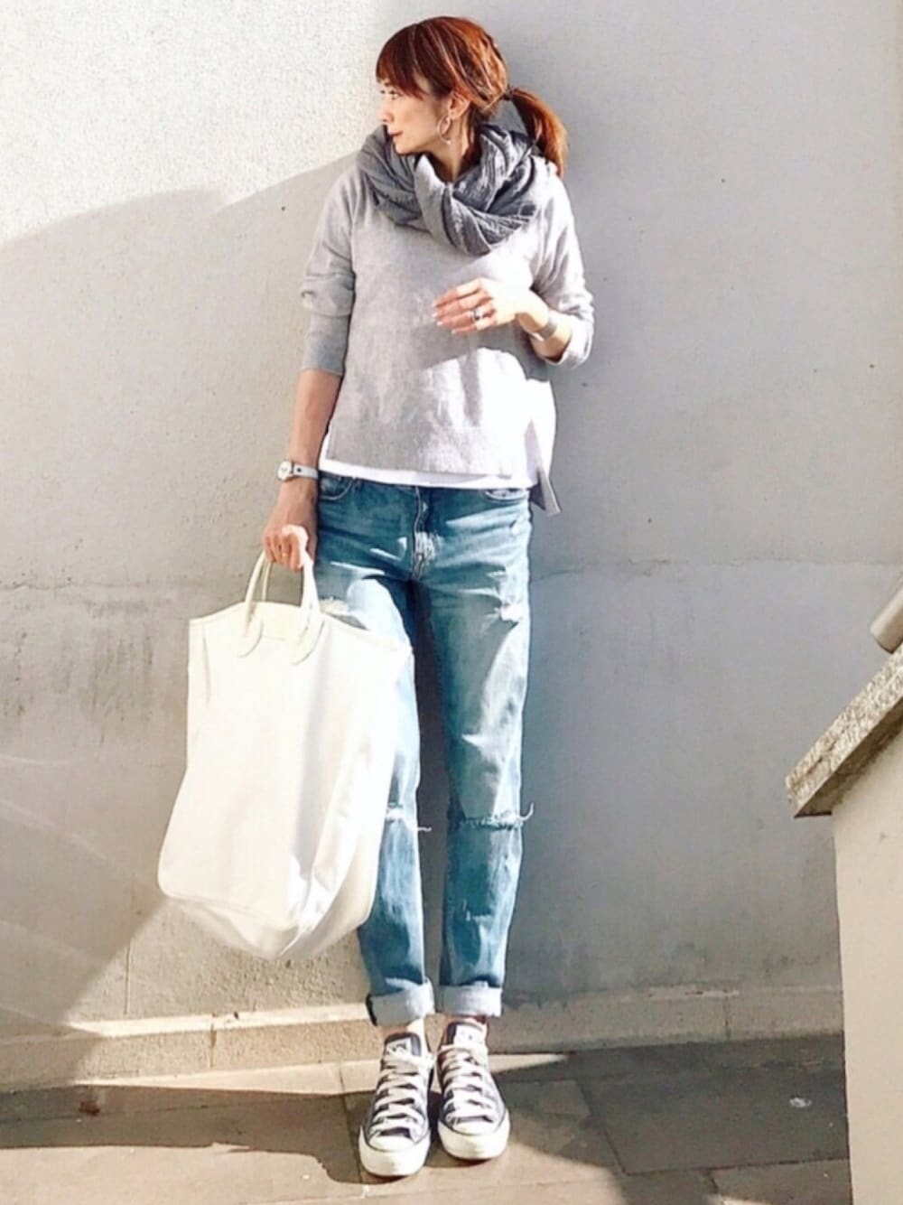 淡いワントーンコーデ 今季はカラーレスなデニムスタイルが気になります