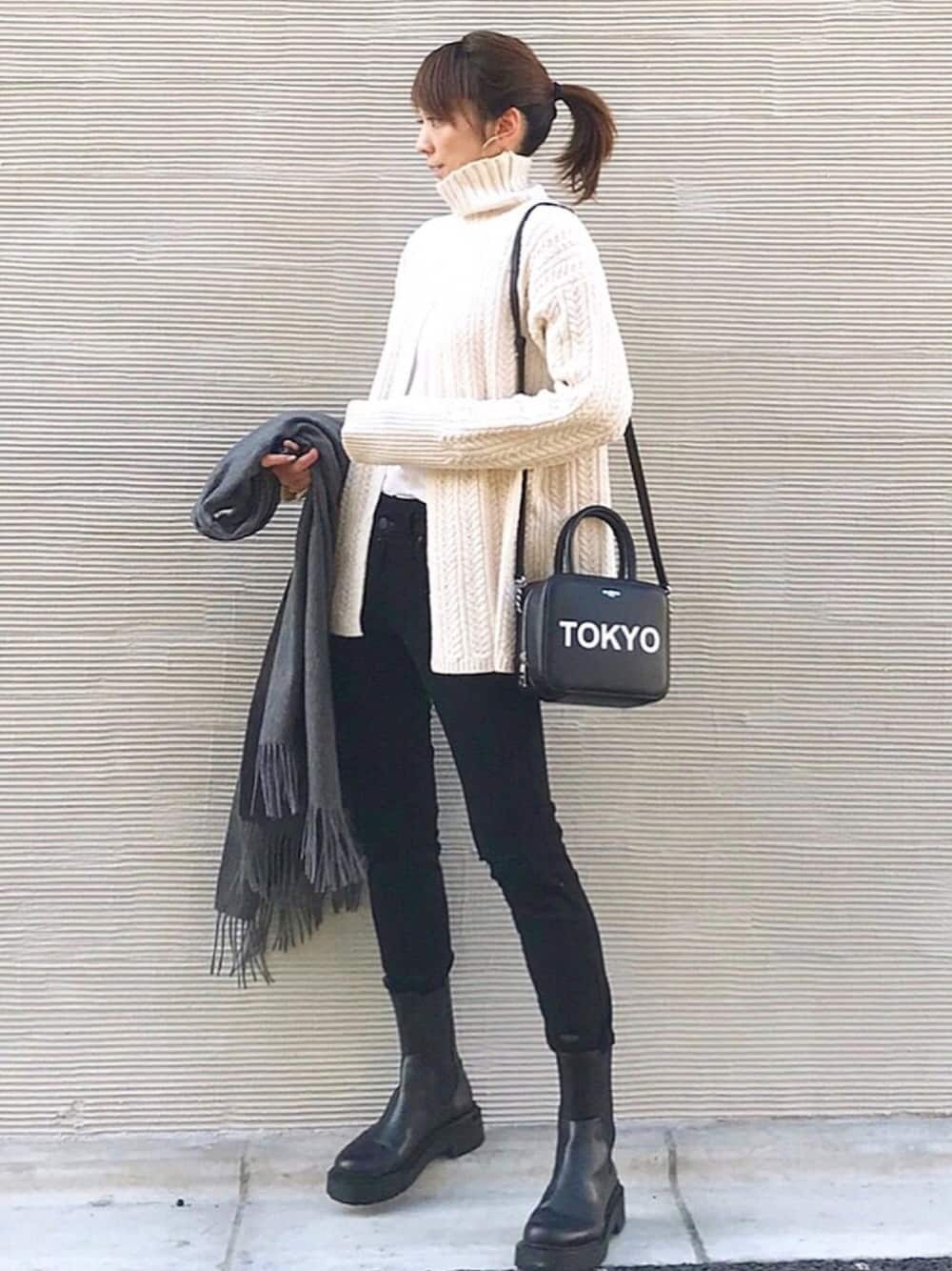 LUMIEのハンドバッグ「<michino>SQUARE TOKYO LEATHER BAG/バッグ」を使ったコーディネート