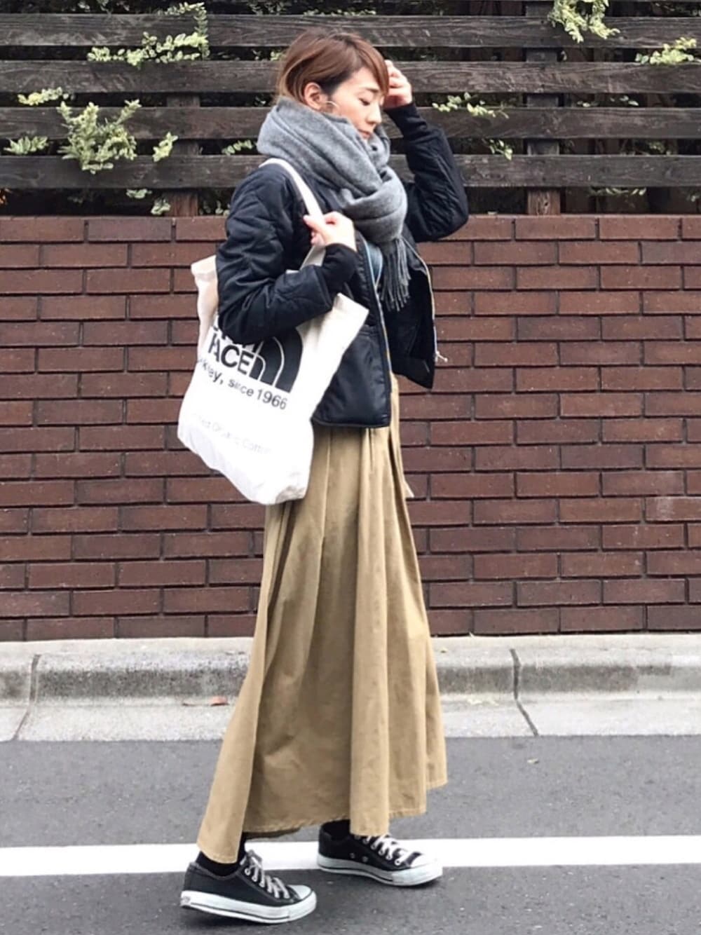 チノスカート ×マフラーぐるぐる グレーマフラーって🧣大好き💕💕 素敵なクリスマスイブを🎄🧑🎄🎂