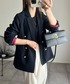 春は紺ブレが着たくなる◎ 最近お気に入りのH&Mのブラウスは、ボタンを留めてオーバーで着るのが好き。