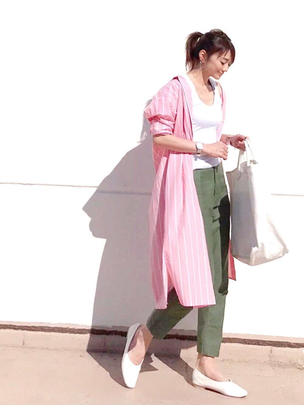 桜餅コーデ🌸🍡 今季豊富なシャツワンピースは、前を開ければ羽織として大活躍🙆🏻♀️