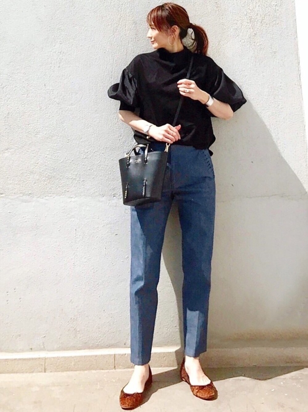 ボリューム袖とボトルネックで最強トップス 甘めなデザインだけど、素材がカットソーだからラフな抜け感あって合わせ易い◎