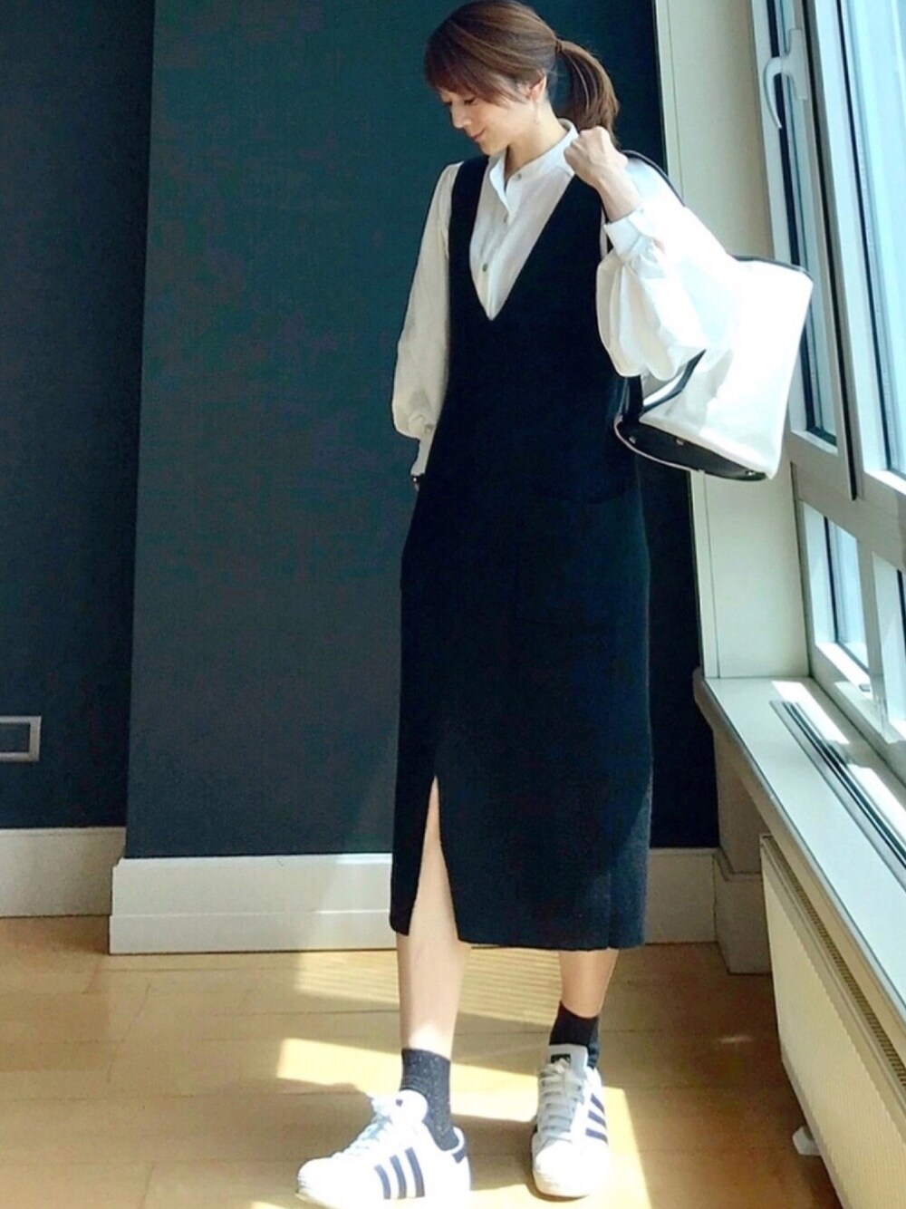 モノトーンカジュアル スニーカーにも合うワンピースコーデってめちゃくちゃ使える!