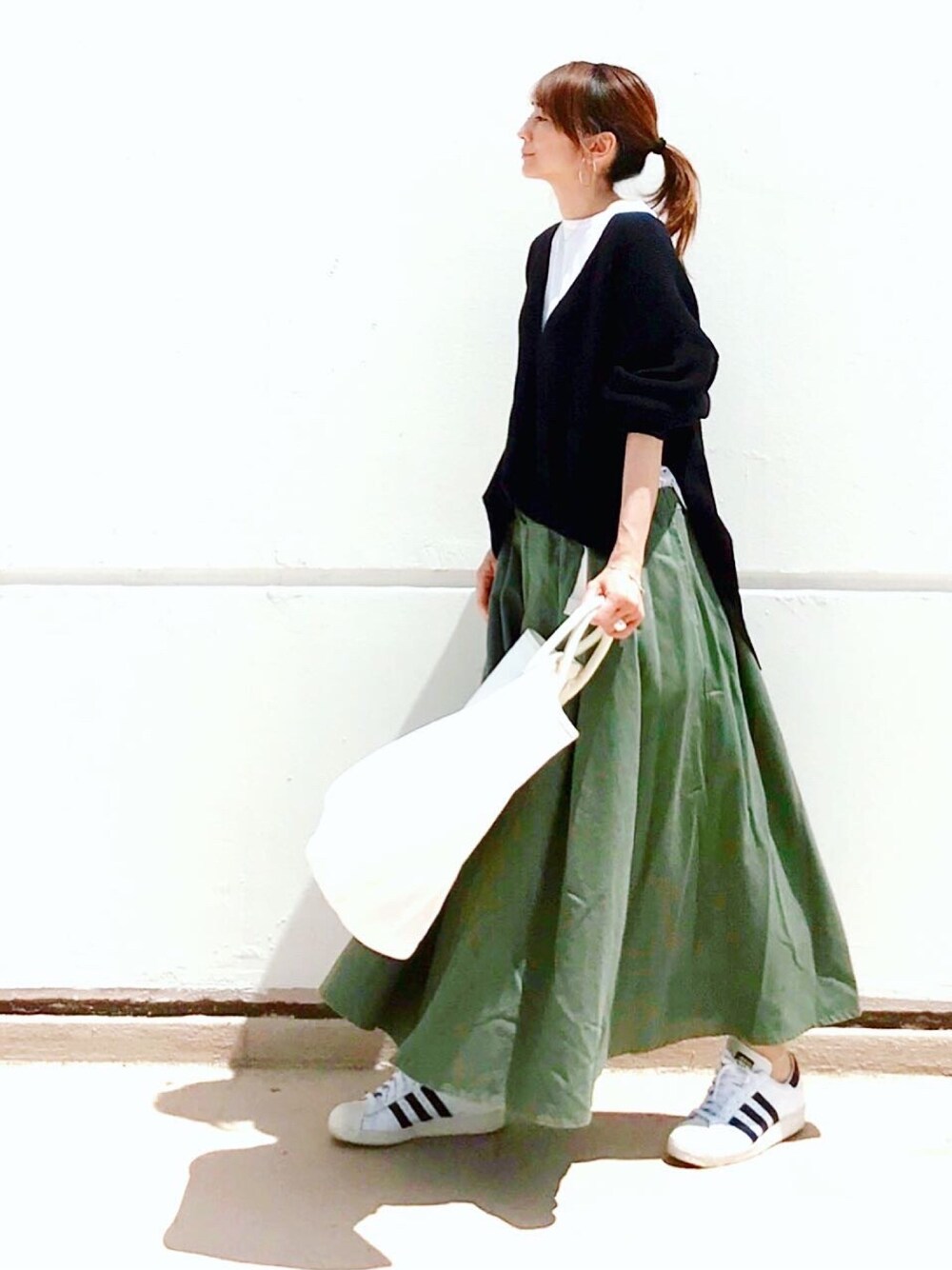 黒×カーキ ボリュームあるフレアスカートが気分あがるポイントです◎