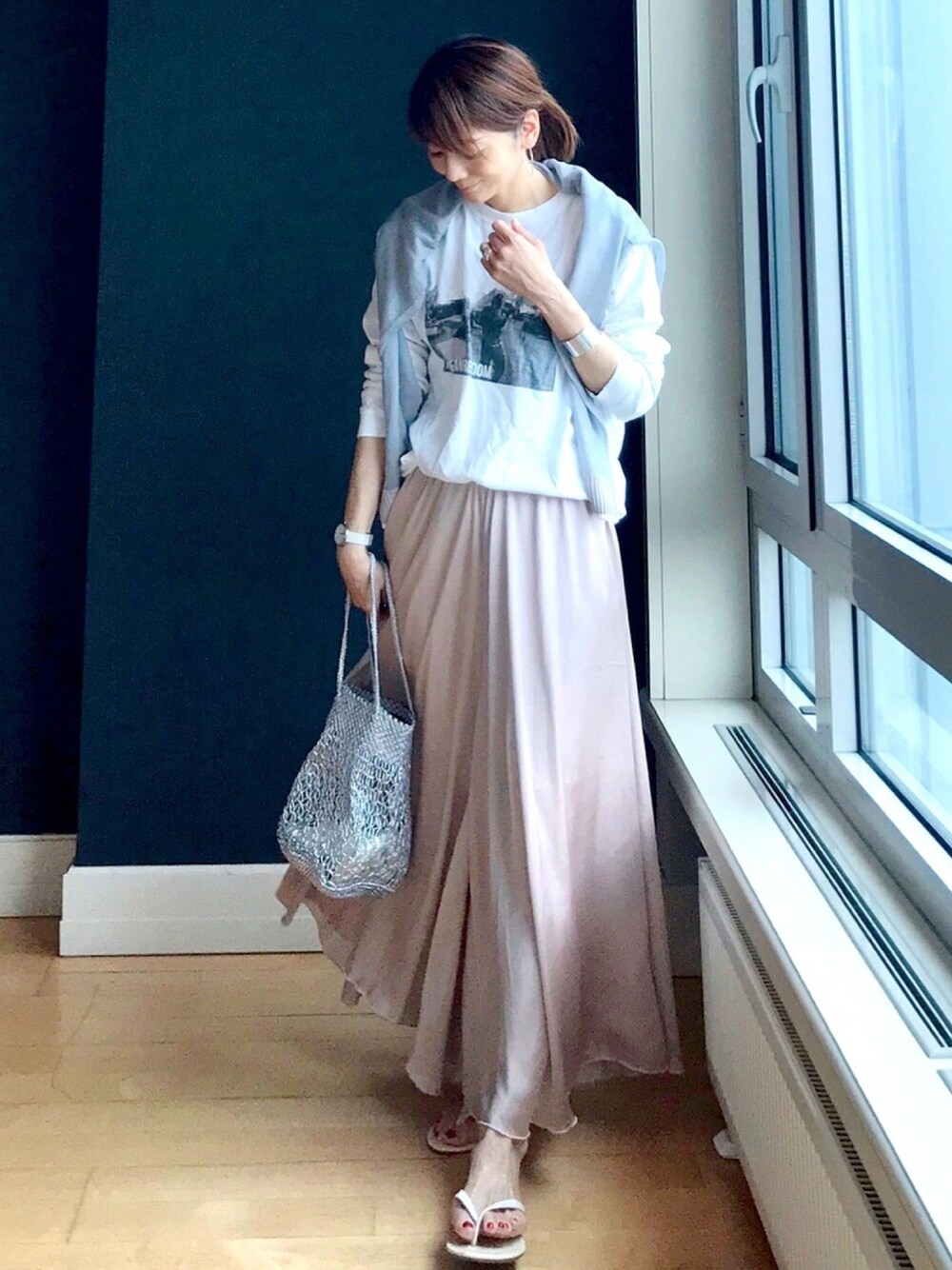 ピンク×グレー 夏小物で軽やかに◎