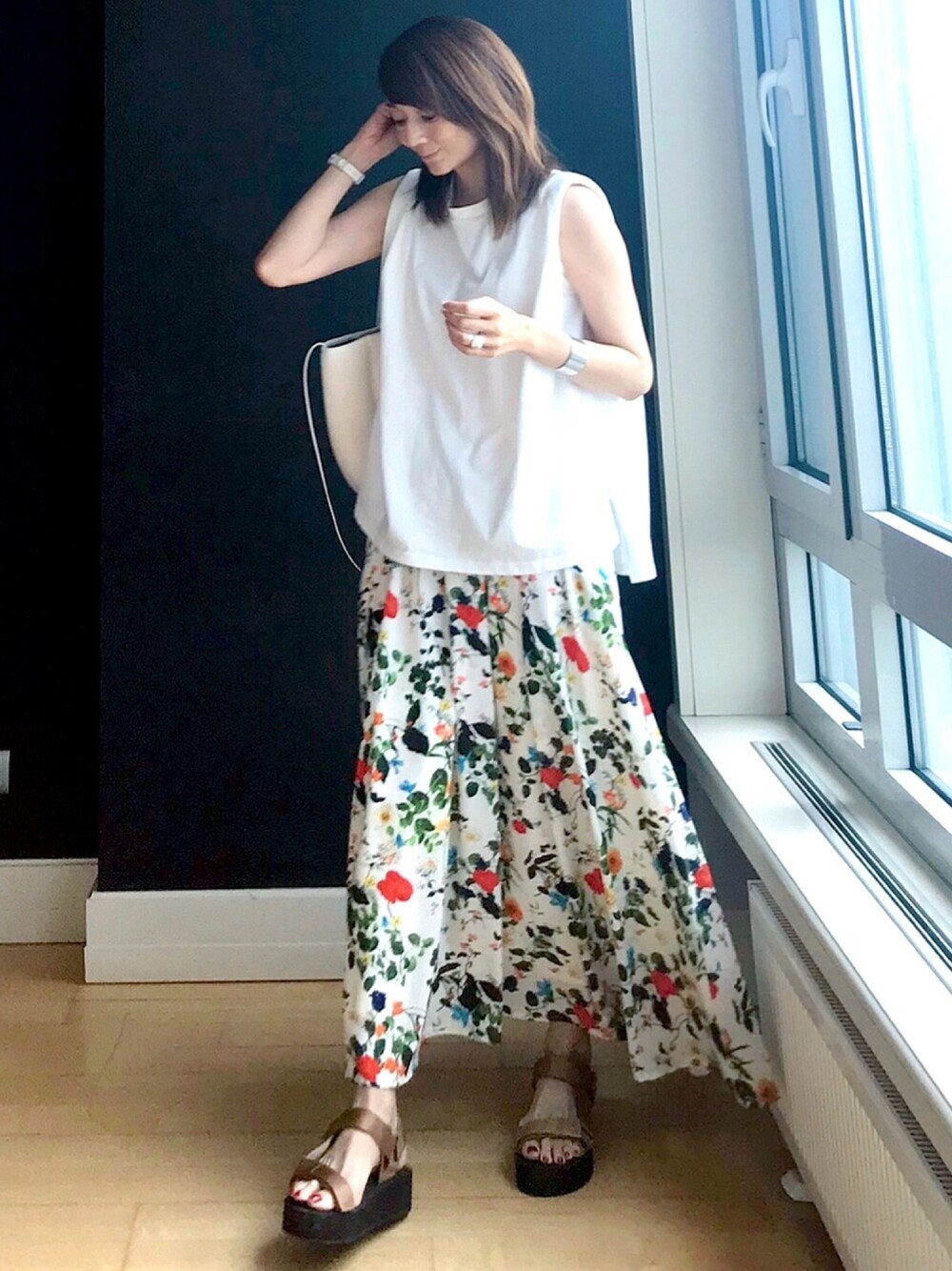 Iラインシルエットにまとめると、すっきりします◎ やっぱりノースリーブは涼しい◎