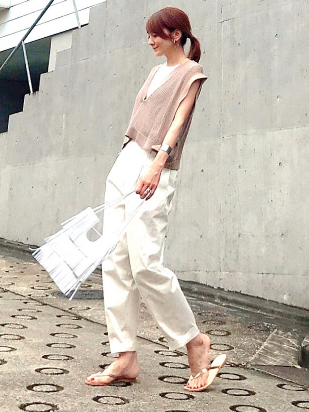 ベージュ × 白 I ラインにすれば、すっきりまとまるよ◎