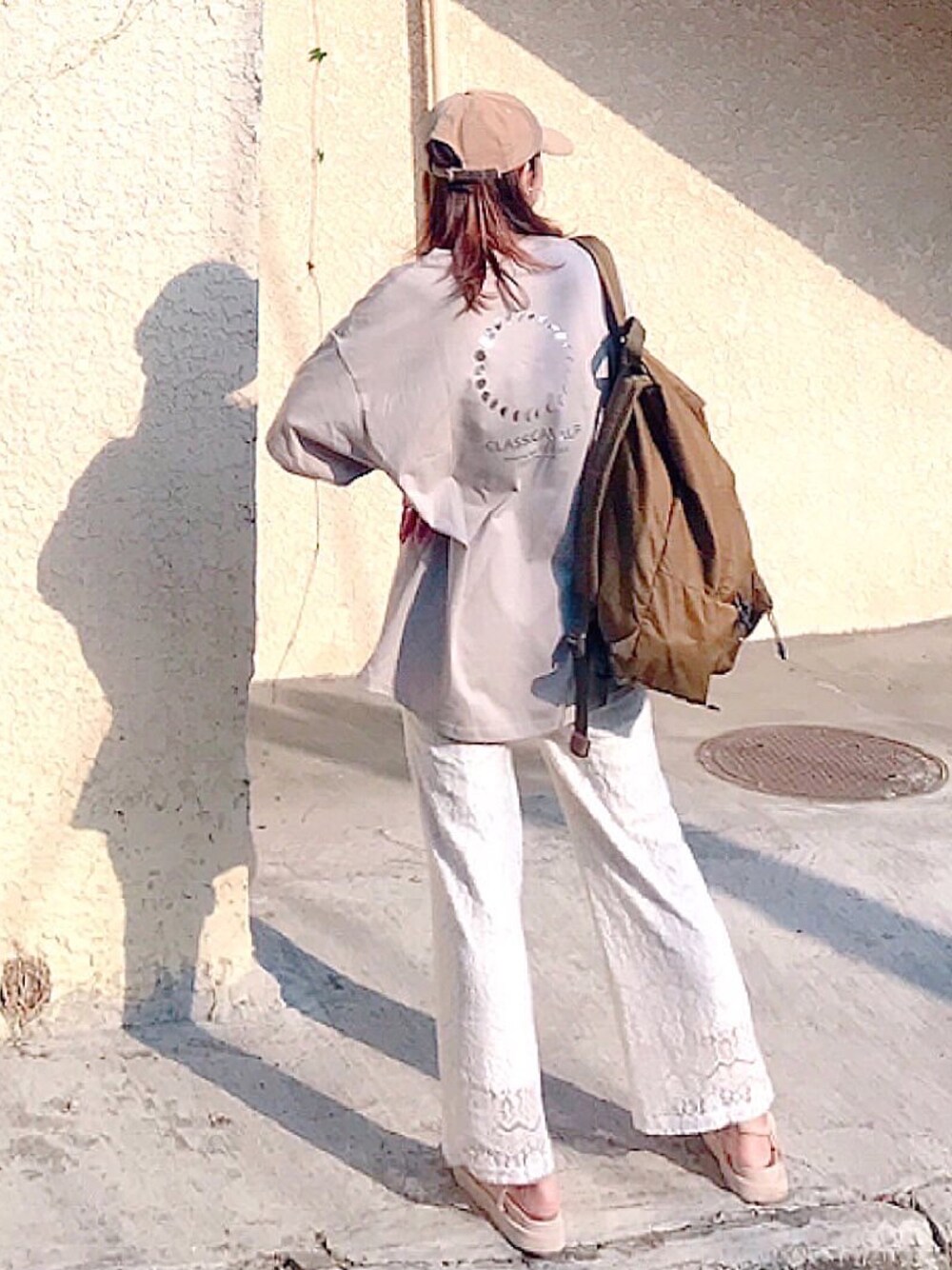 ベージュのワントーン スポーティなコーデは、ベージュでまとめると優しくて女の子らしくなります◎