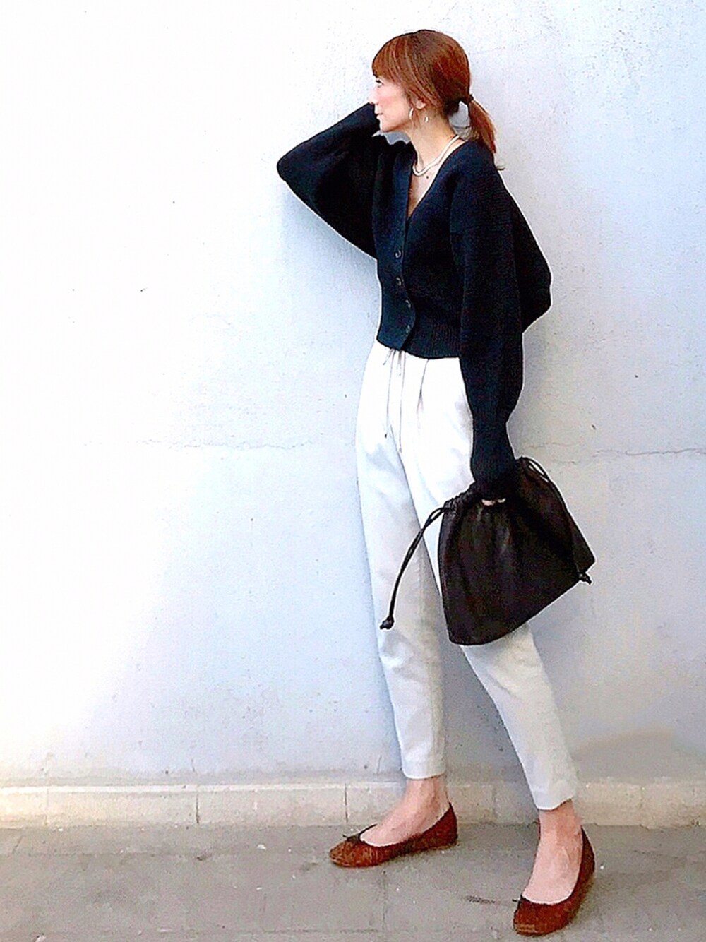 LUMIEのカーディガン/ボレロ「コクーンスリーブVネックニットカーディガン」を使ったコーディネート