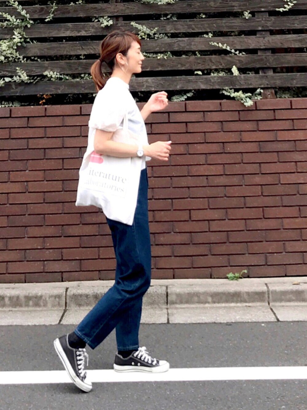 白ブラウス×デニム 結局昨日も、なんだかんだ暑くてこんなコーデでした❗️ 白×デニムって、やっぱ一年中間違いないやつです◎