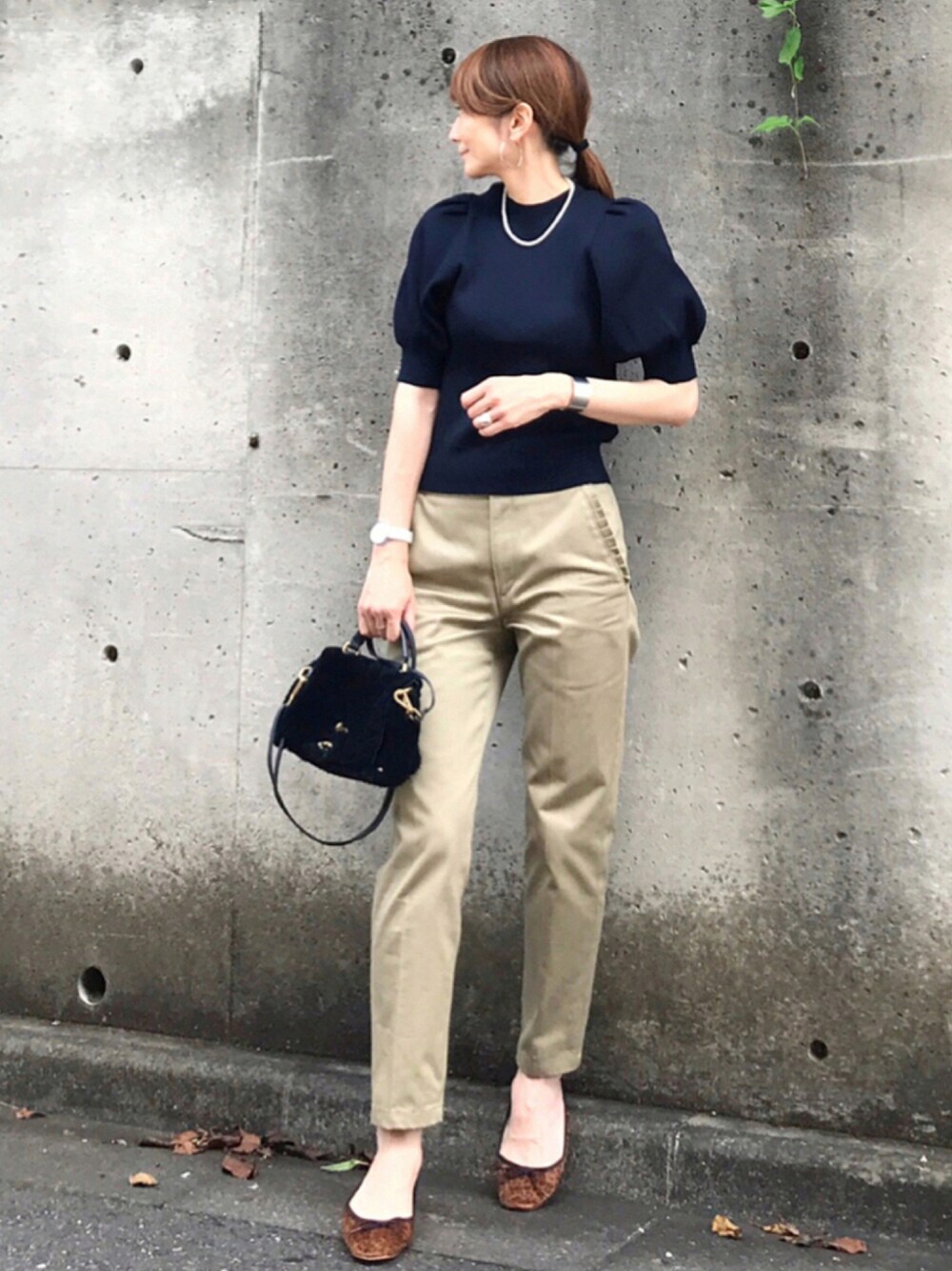 袖のボリュームが可愛いニット 生地に光沢があってお出掛けコーデにぴったり◎