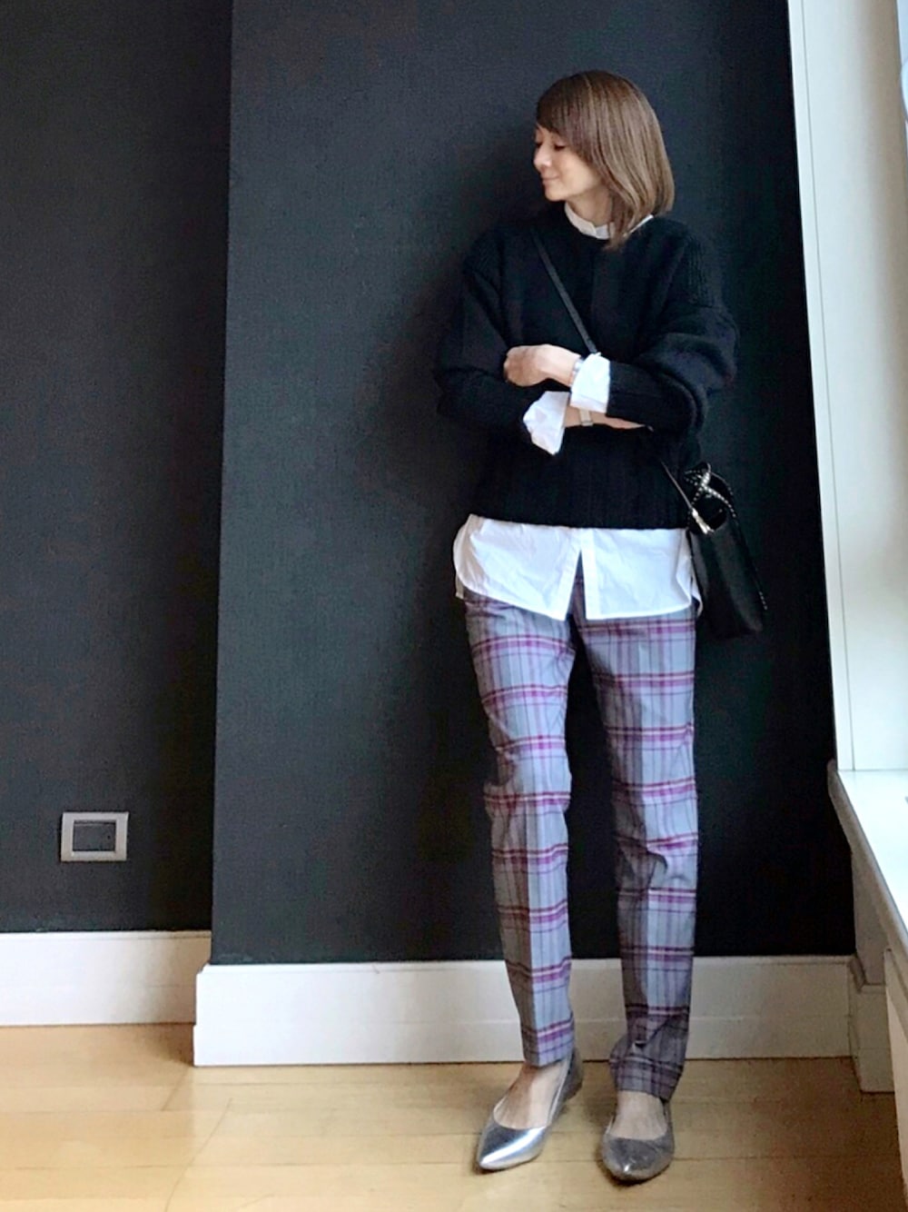 シャツレイヤード 定番なトラッドスタイルも、チェックパンツの色味が可愛さで鮮度アップ⤴️