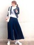 ライダース✖️ガウチョパンツ 辛口になりがちなライダースコーデも、プリーツガウチョパンツなら優しい雰囲気に◎