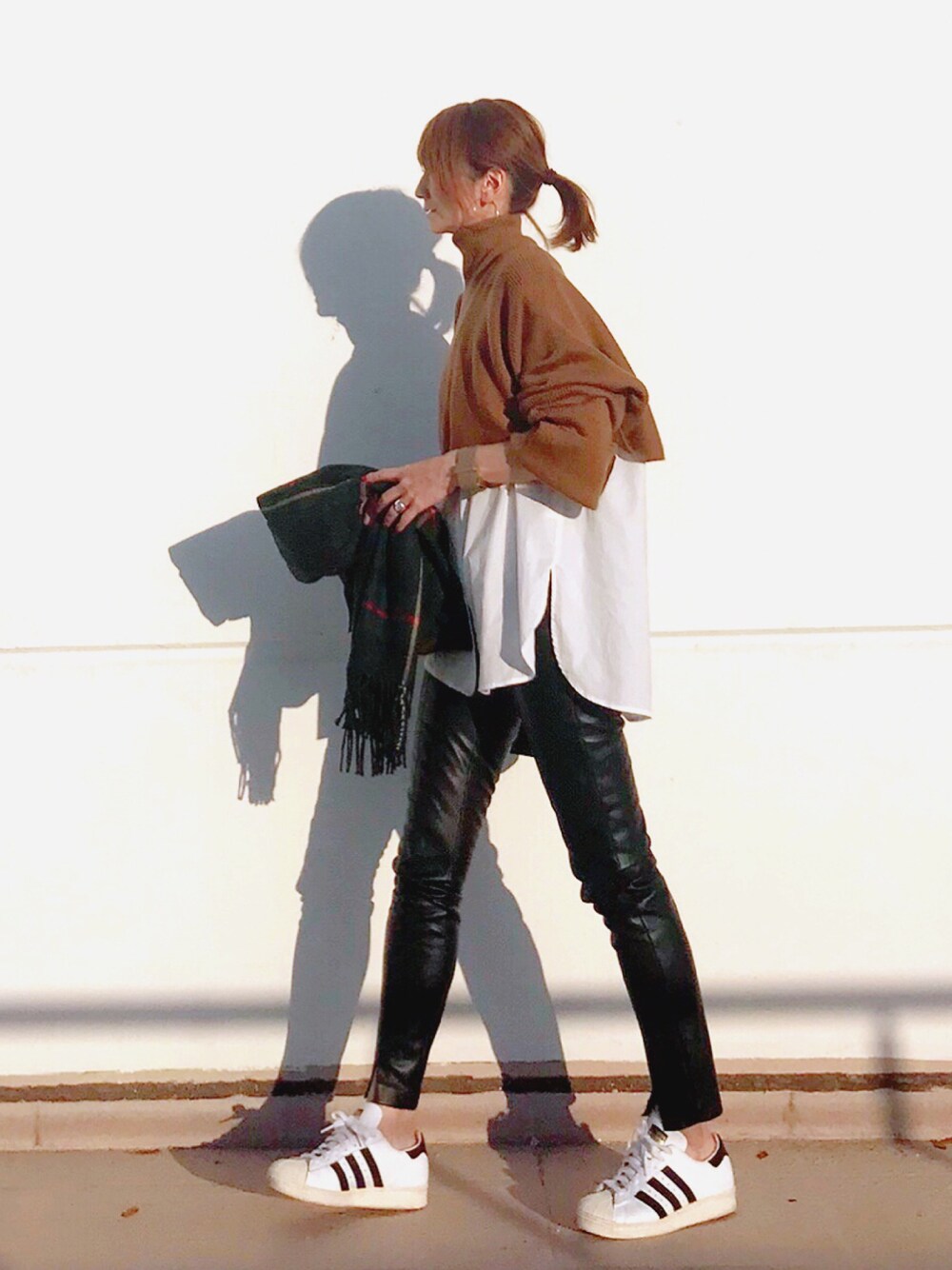 クロップド丈のニット🧶 数年前のものだけど、今だに現役です‼️ インに着てるチュニックシャツがレイヤードにちょうどよくて、最近出番多いです◎ サイドスリットとくびれのないシルエットがレイヤードしやすい理由かも🙆🏻♀️