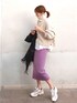 ニットタイトスカート ピンクでほんのり甘めのスポーツミックスが気分◎ 予想通り、足元はピンクのエアマックスがぴったりでした◎