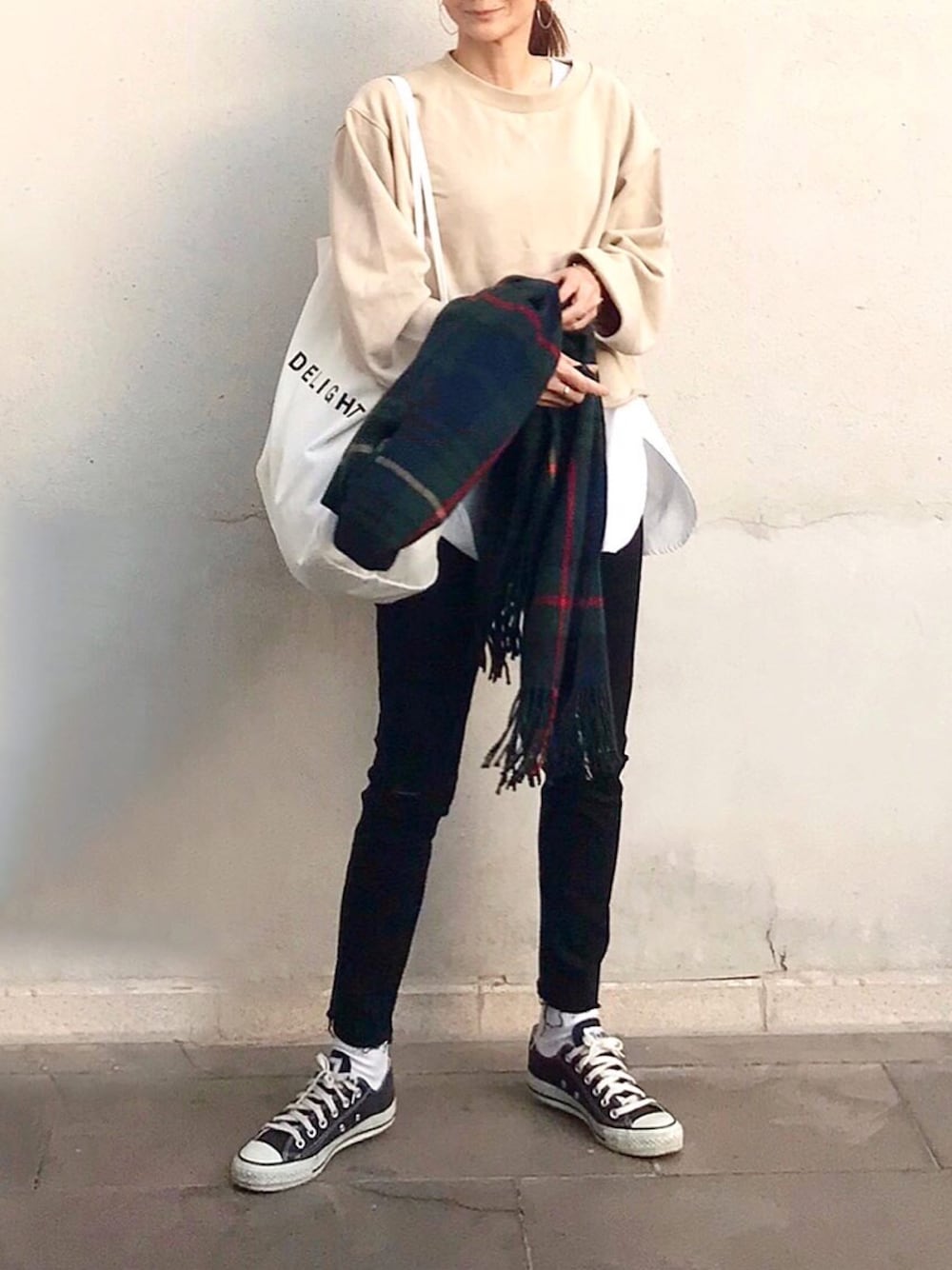 LUMIEのトートバッグ「カラーデカトート/ロゴトートバッグ ◆」を使ったコーディネート