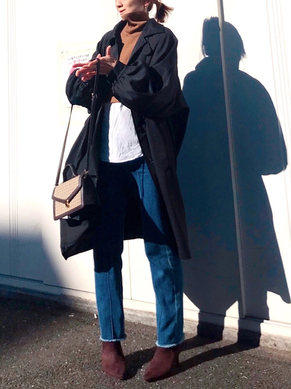 袖のふんわりがお気に入りのステンカラーコート オーバーサイズだから、寒いうちは中にしっかり着込めるよ◎