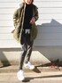 カーキ × モノトーン レイヤードコーデ。シャツを挟むだけで動きが出ます。あたたかいし、オススメです◎