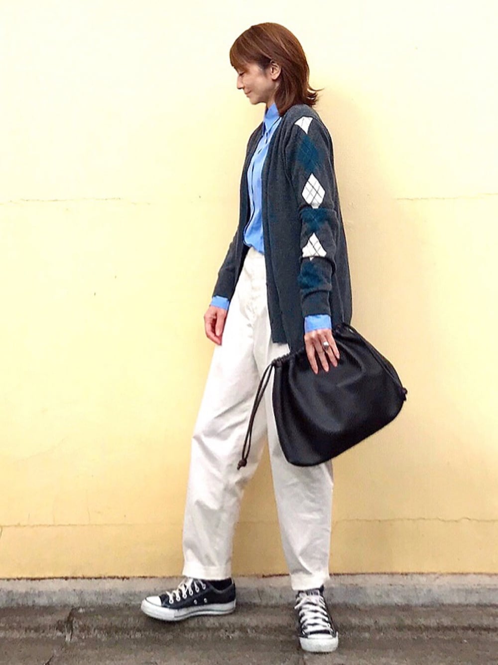 グレー × ブルー 肩にアーガイル柄がついてるカーディガンは、一癖あってお気に入り◎何年か前のle ciel bleu のものです。 大切に着ています◎