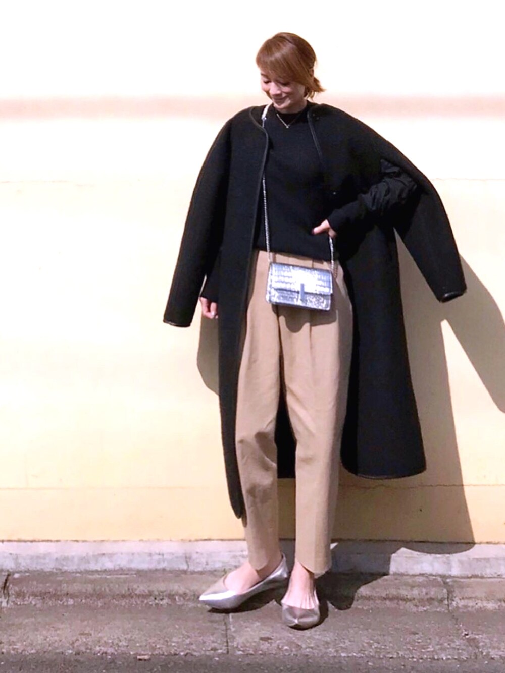 黒×ベージュ シルバー小物でアクセント